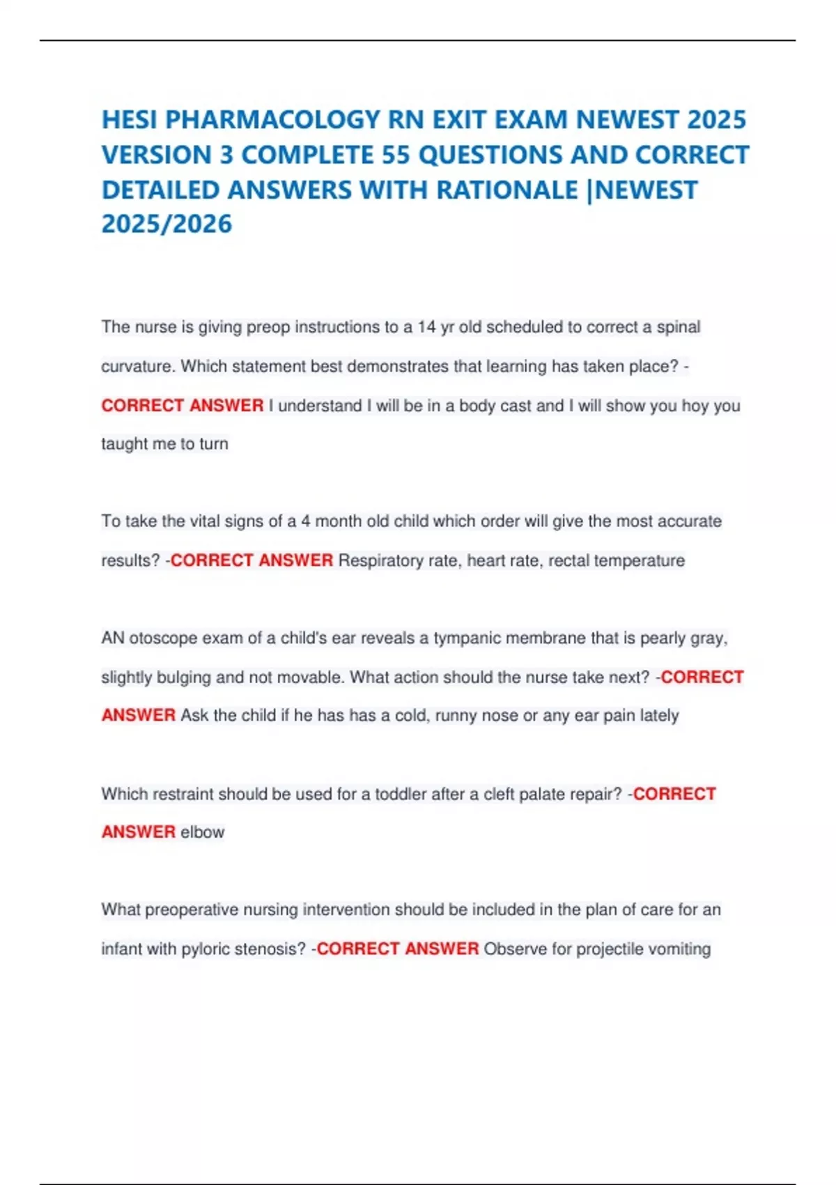 HESI PHARMACOLOGY RN EXIT EXAM NEWEST 2025