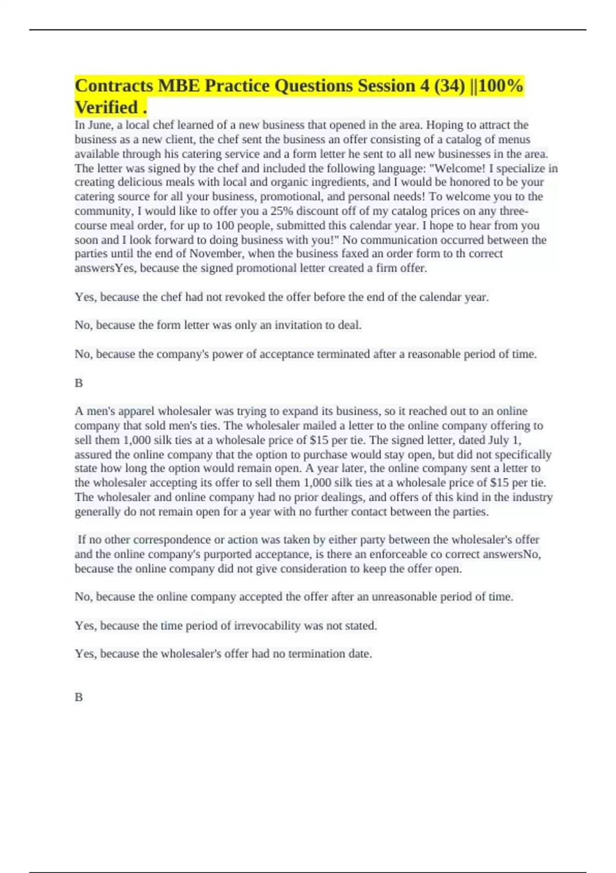 Contracts MBE Practice Questions Session 4 (34) ||100%