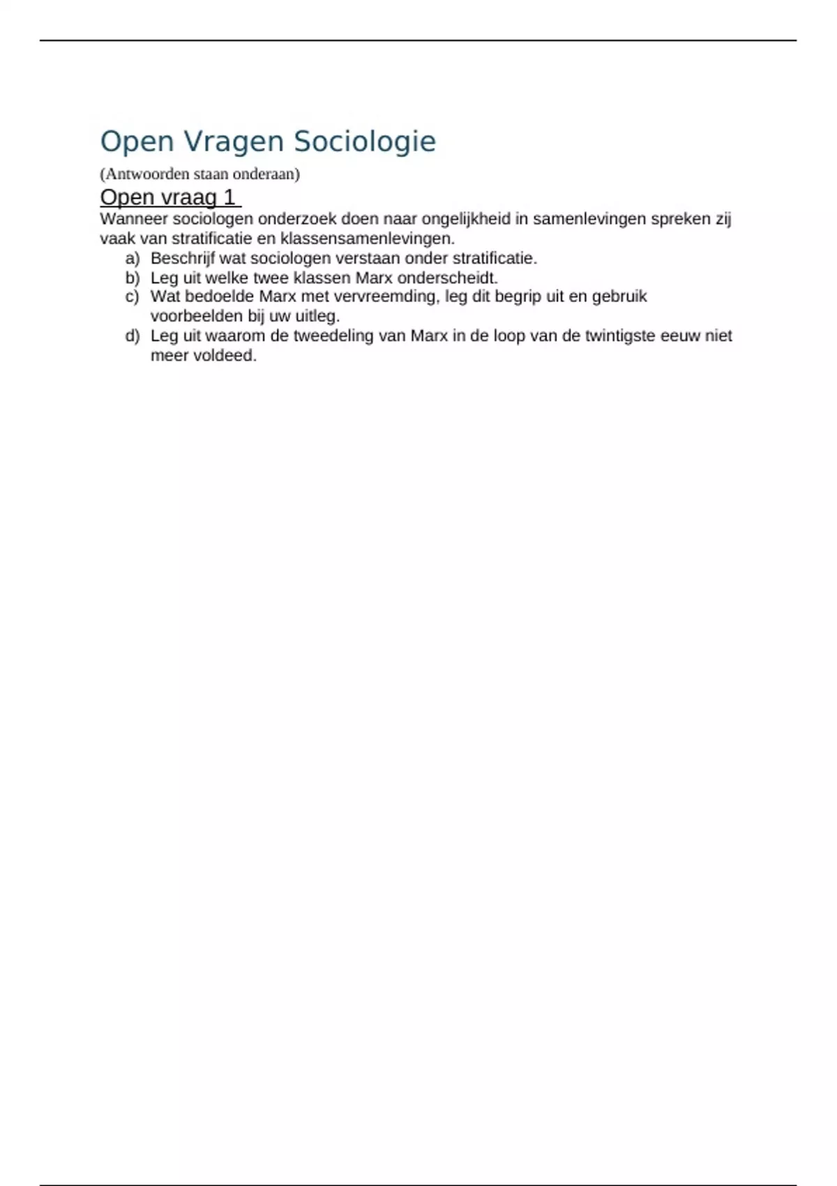 Mogelijke open vragen sociologie (echt gebruikt in oude tentamens!!)
