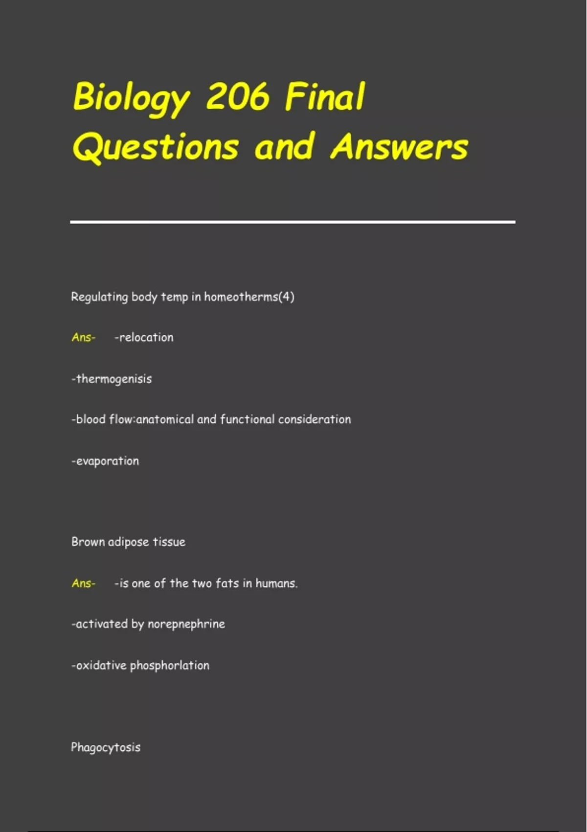 Biology 206 Final