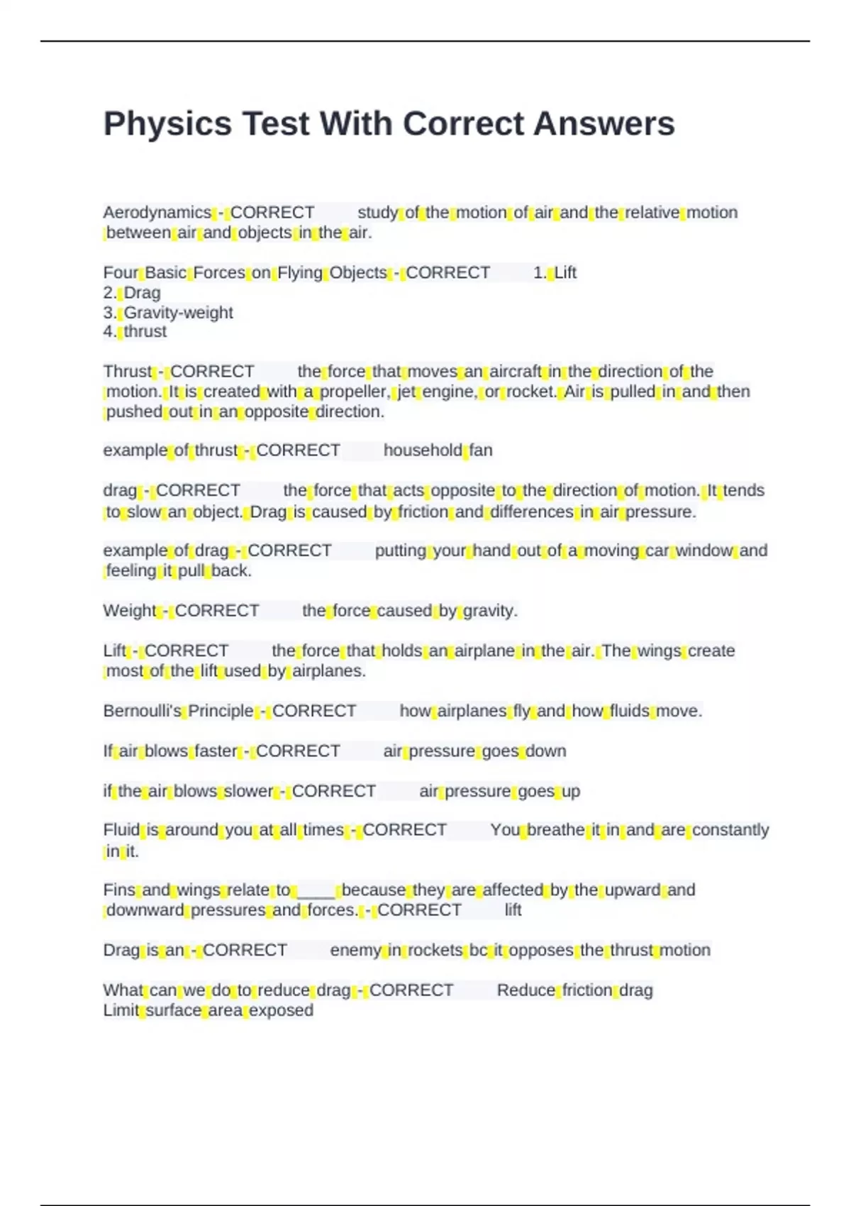 Physics Test With Correct Answers