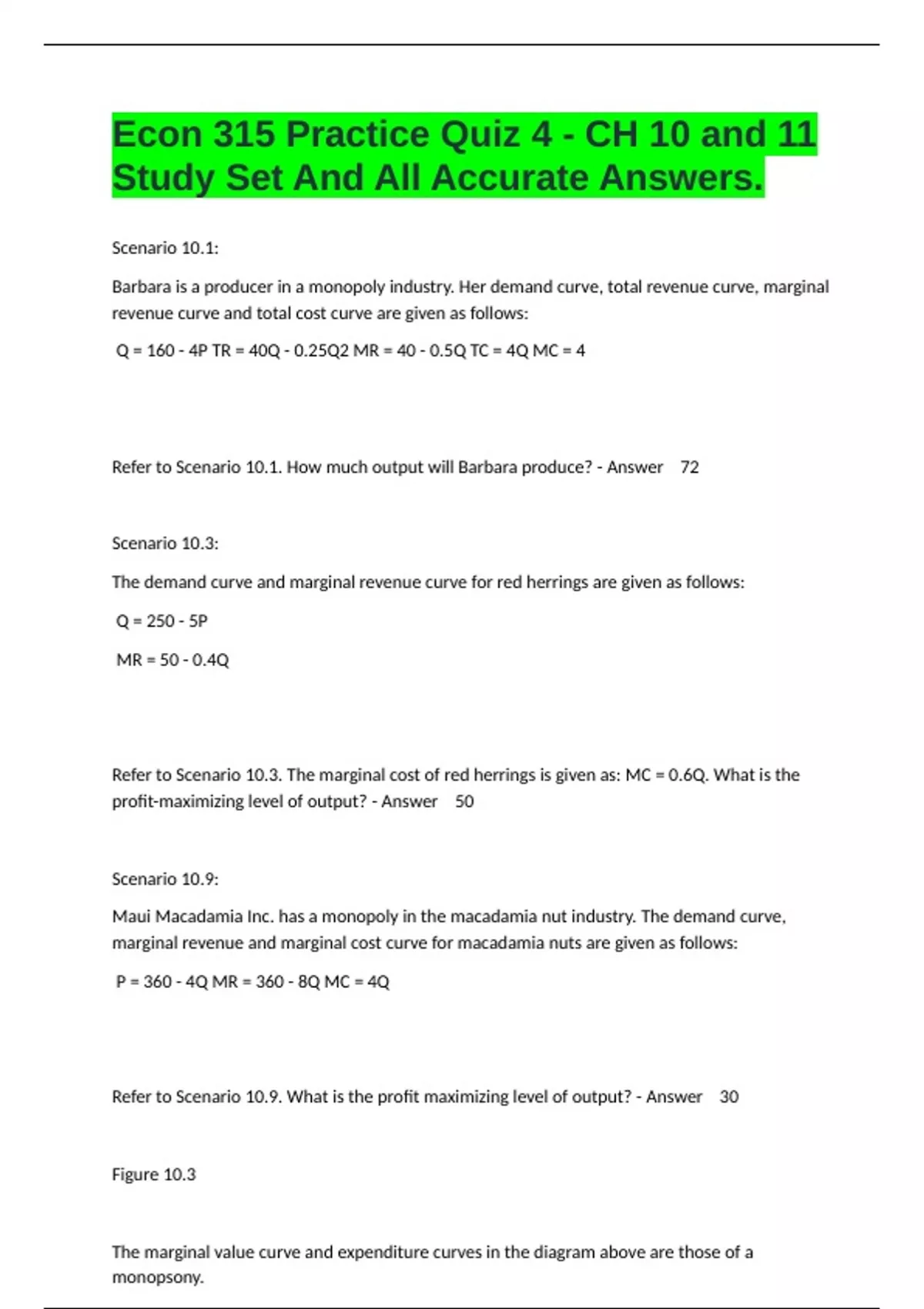 Econ 315 Practice Quiz 4 - CH 10 and 11 Study Set And All Accurate Answers.