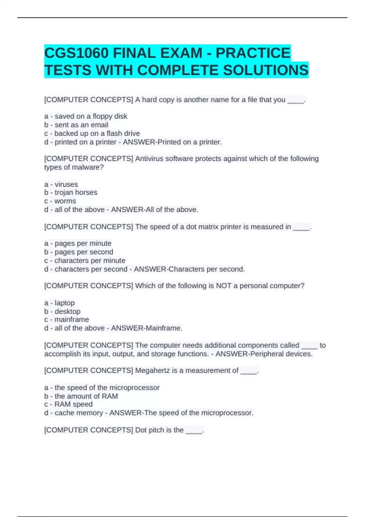 [COMPUTER CONCEPTS] A hard copy is another name for a file that you ____.