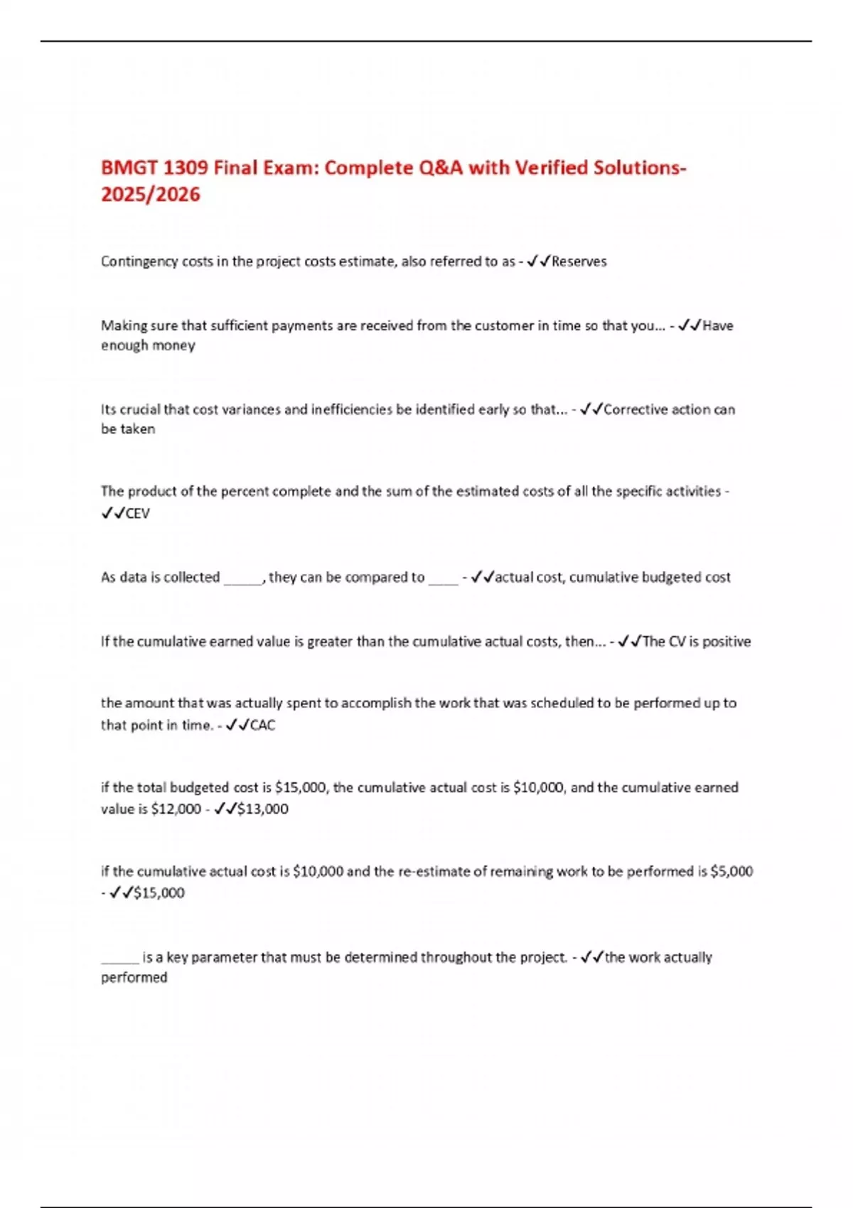 BMGT 1309 Final Exam: Complete Q&A with Verified Solutions 2025/2026
