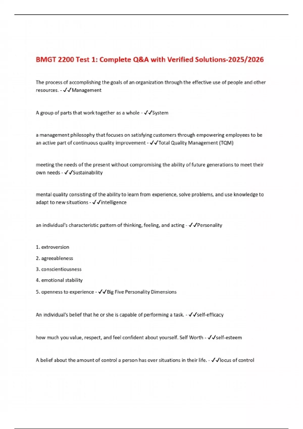BMGT 2200 Test 1: Complete Q&A with Verified Solutions-2025/2026