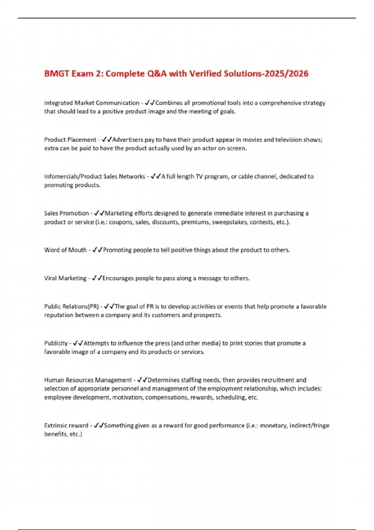 BMGT Exam 2: Complete Q&A with Verified Solutions-2025/2026