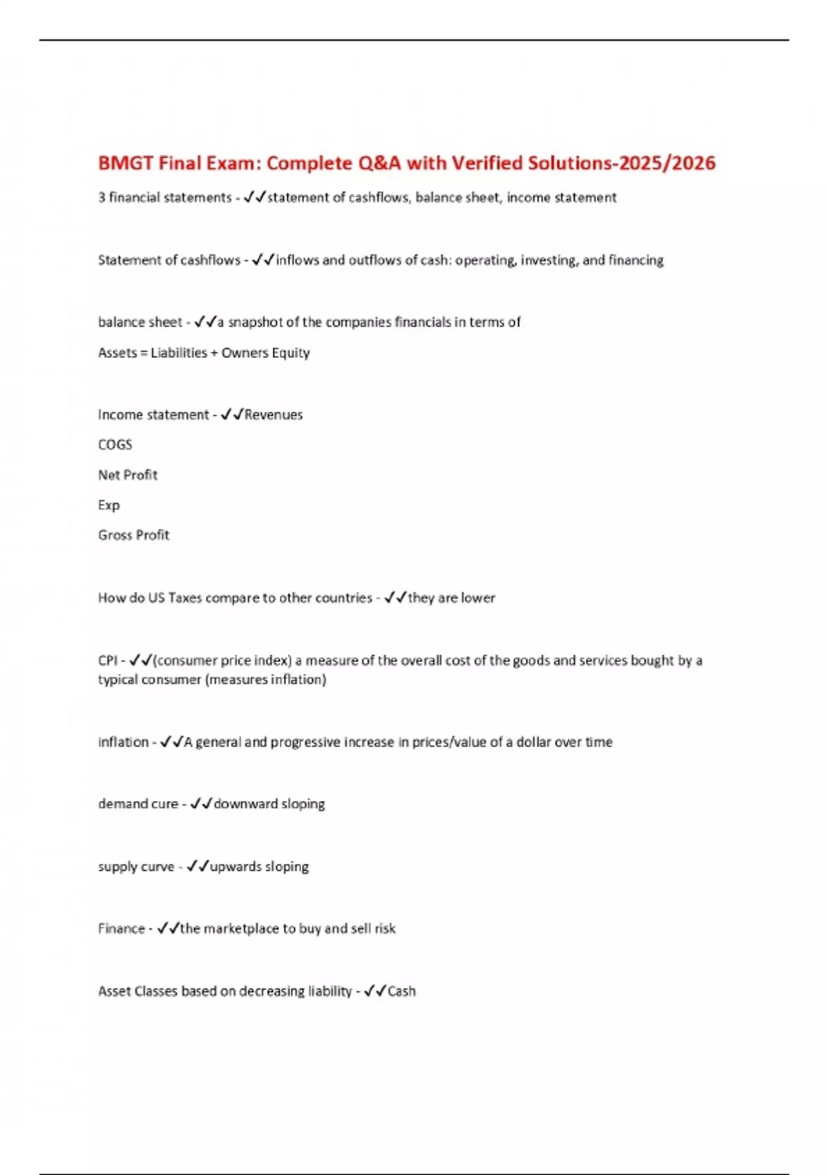 BMGT Final Exam: Complete Q&A with Verified Solutions-2025/2026