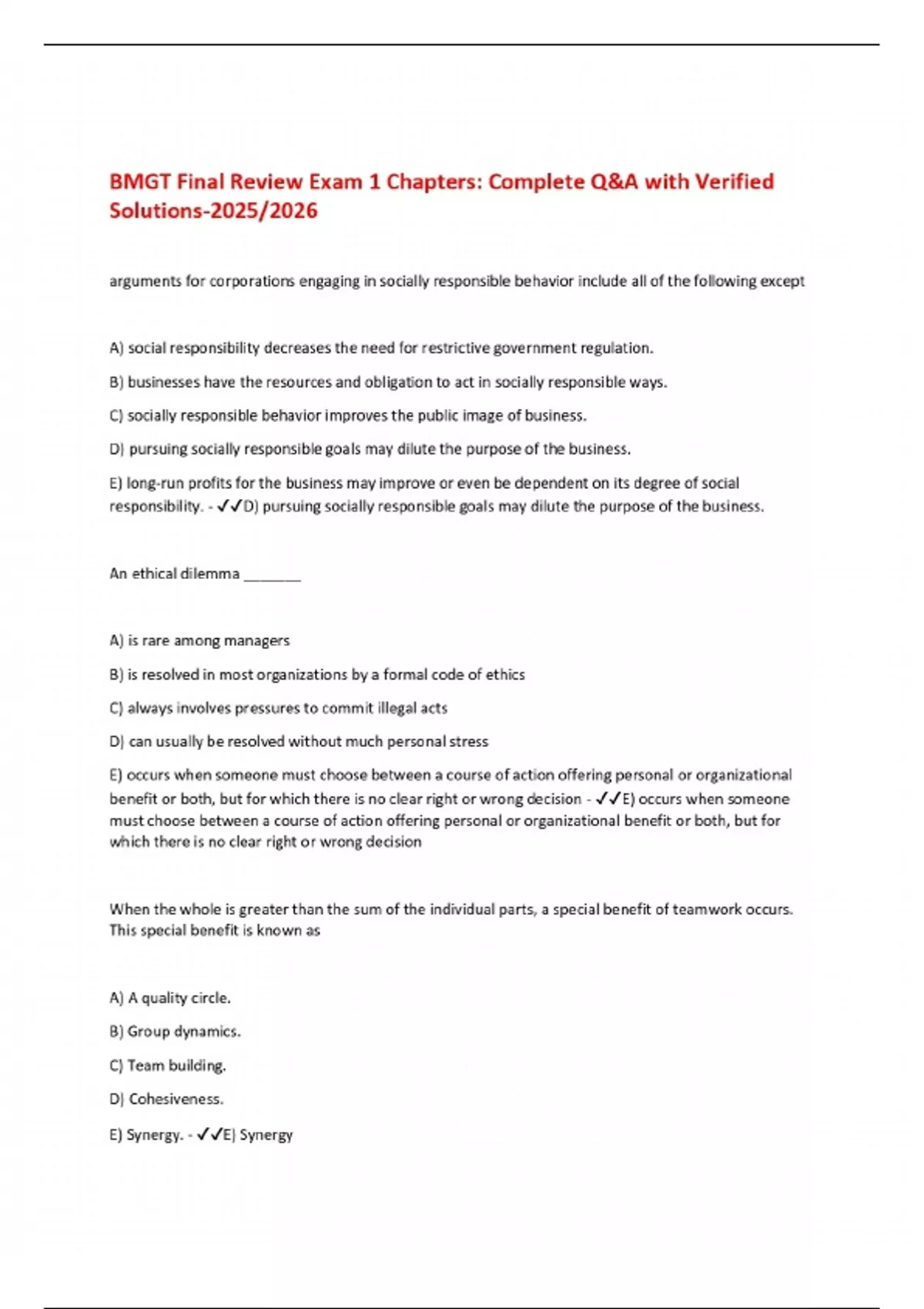 BMGT Final Review Exam 1 Chapters: Complete Q&A with Verified Solutions-2025/2026