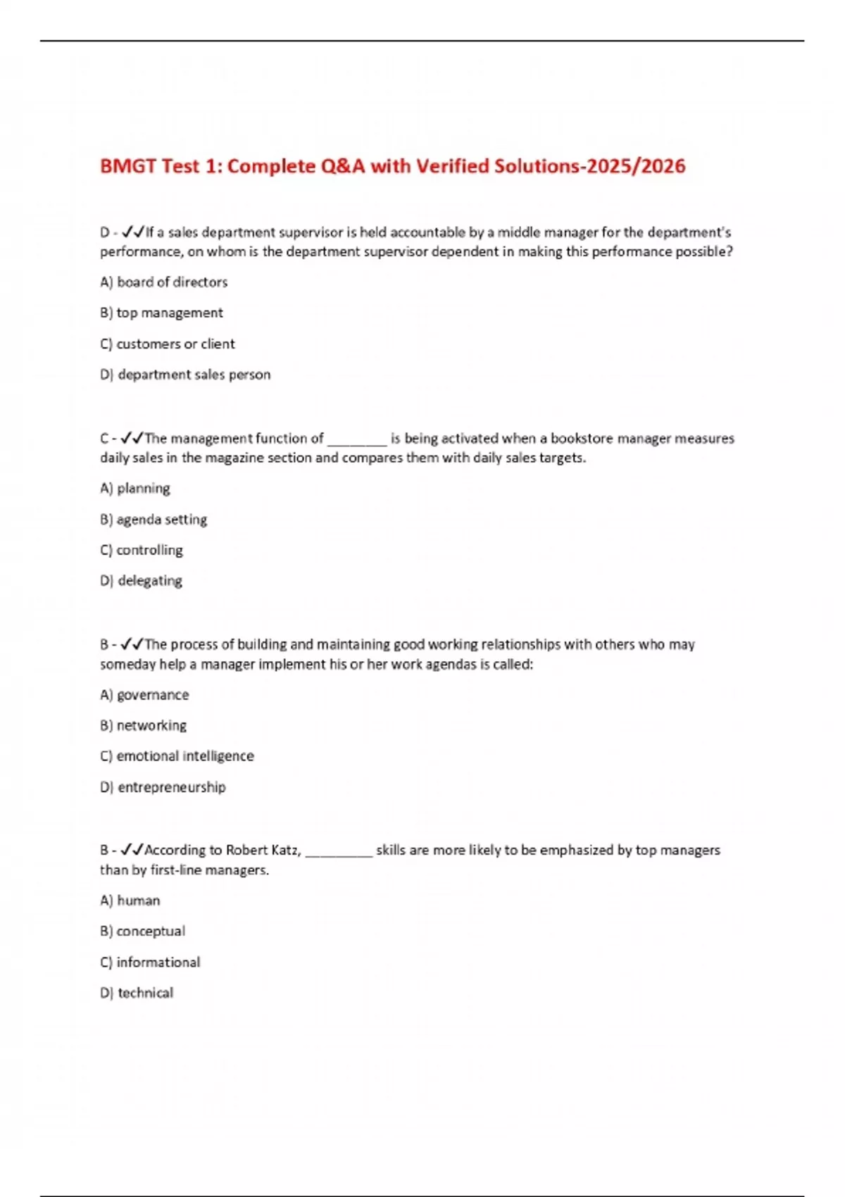 BMGT Test 1: Complete Q&A with Verified Solutions-2025/2026