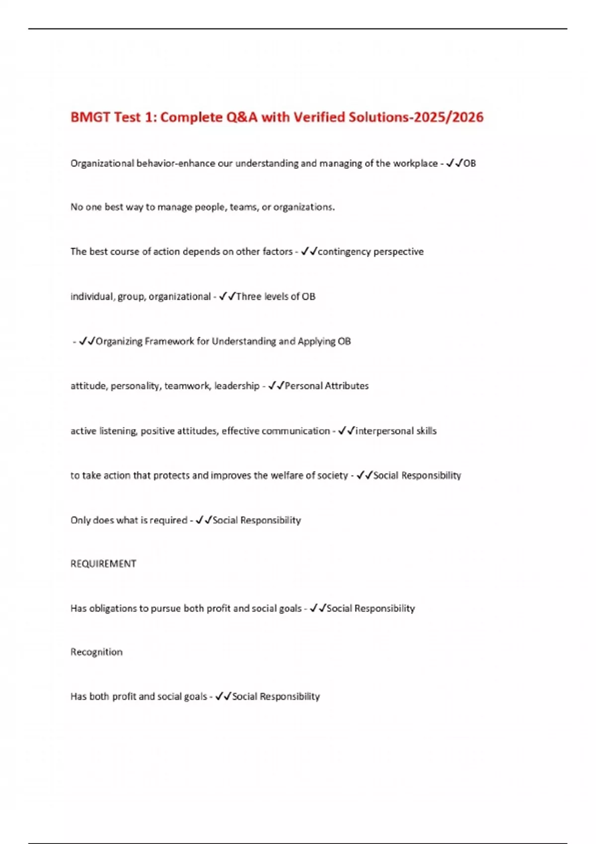 BMGT Test 1: Complete Q&A with Verified Solutions-2025/2026