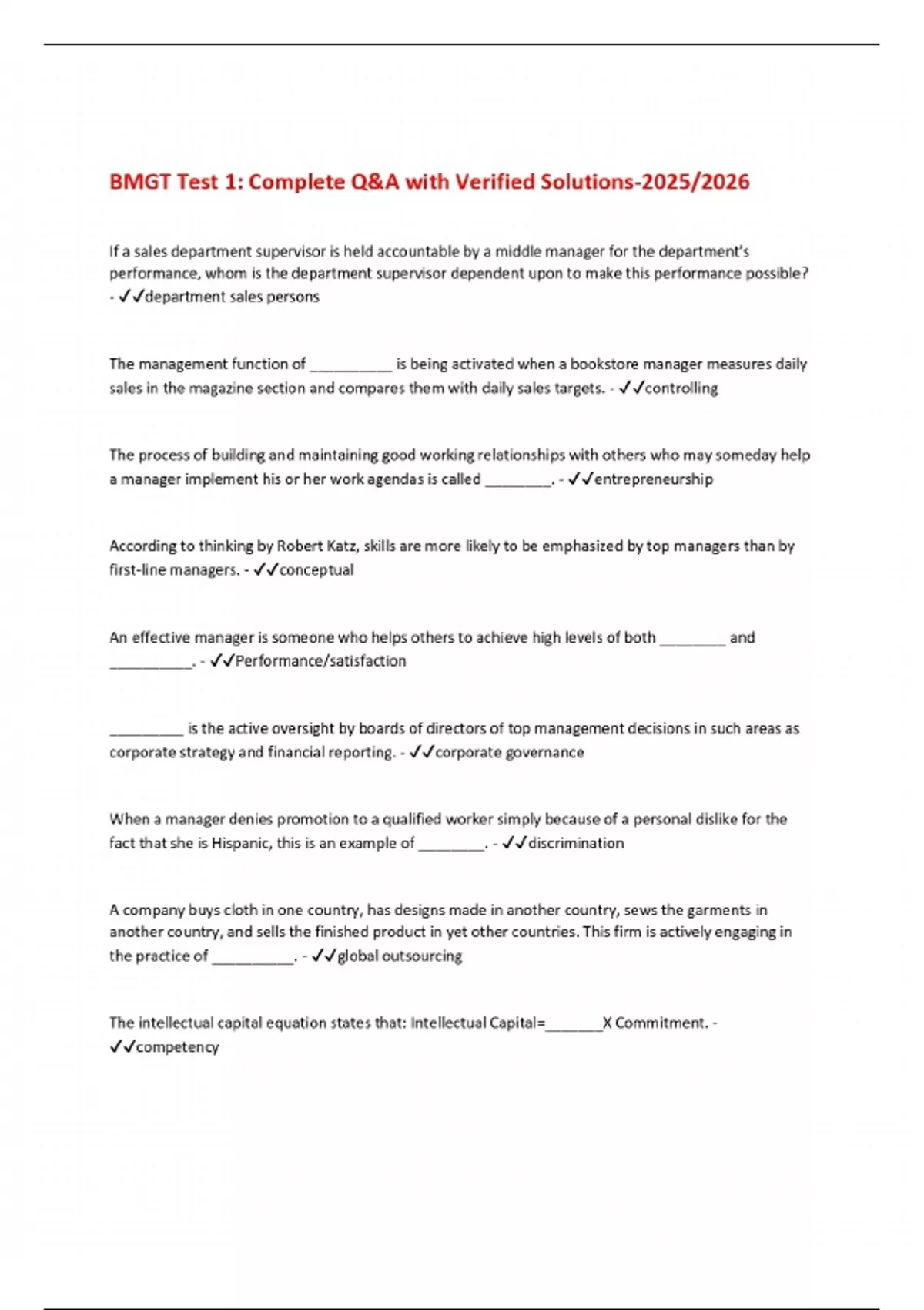 BMGT Test 1: Complete Q&A with Verified Solutions-2025/2026