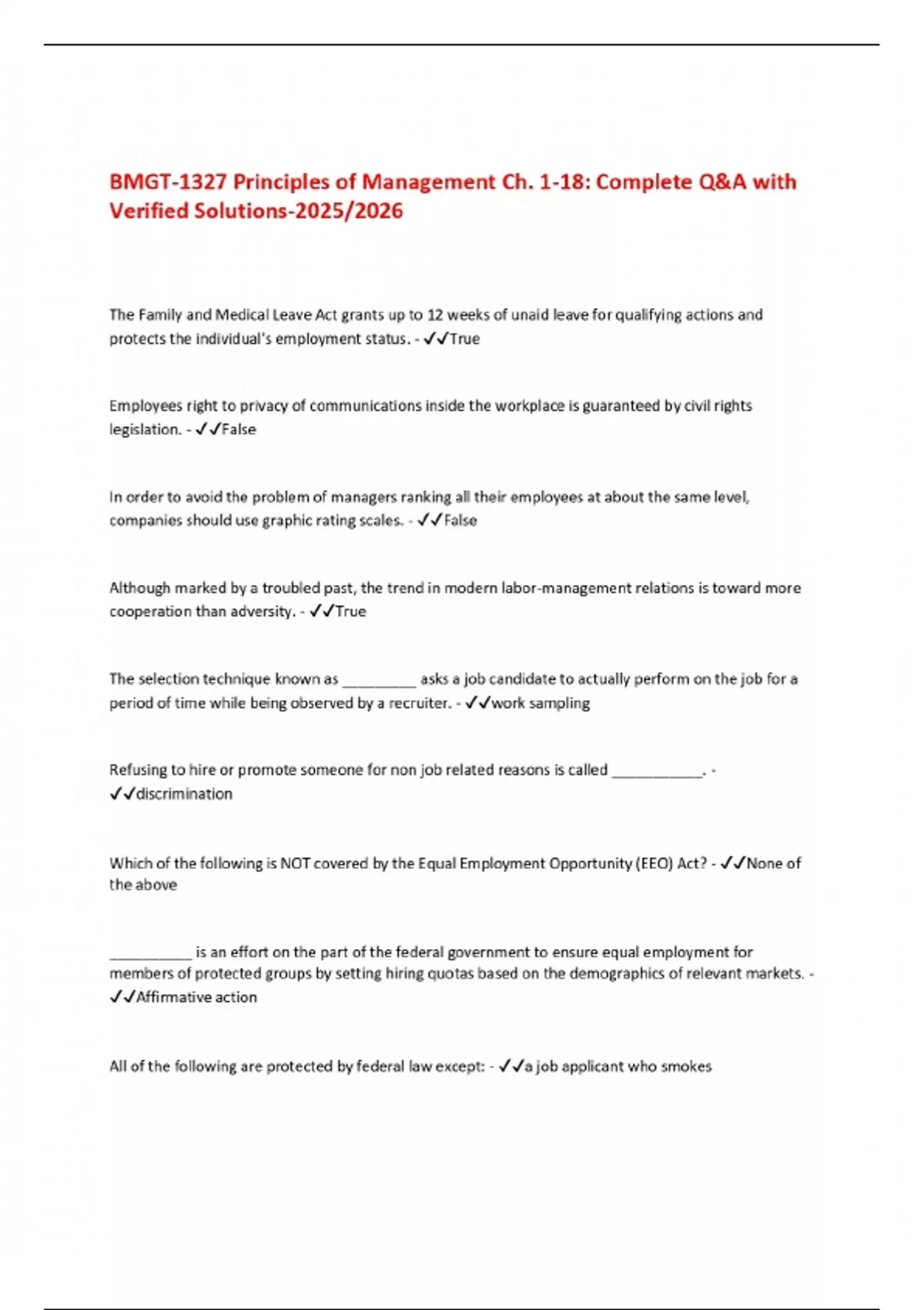 BMGT-1327 Principles of Management Ch. 1-18: Complete Q&A with Verified Solutions-2025/2026