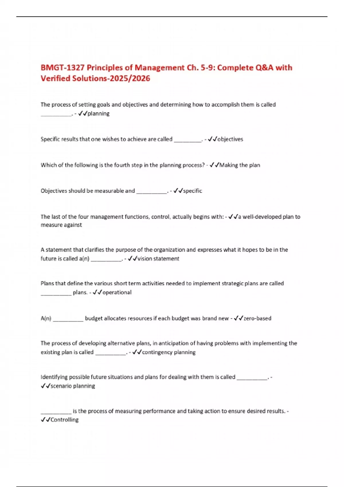 BMGT-1327 Principles of Management Ch. 5-9: Complete Q&A with Verified Solutions-2025/2026
