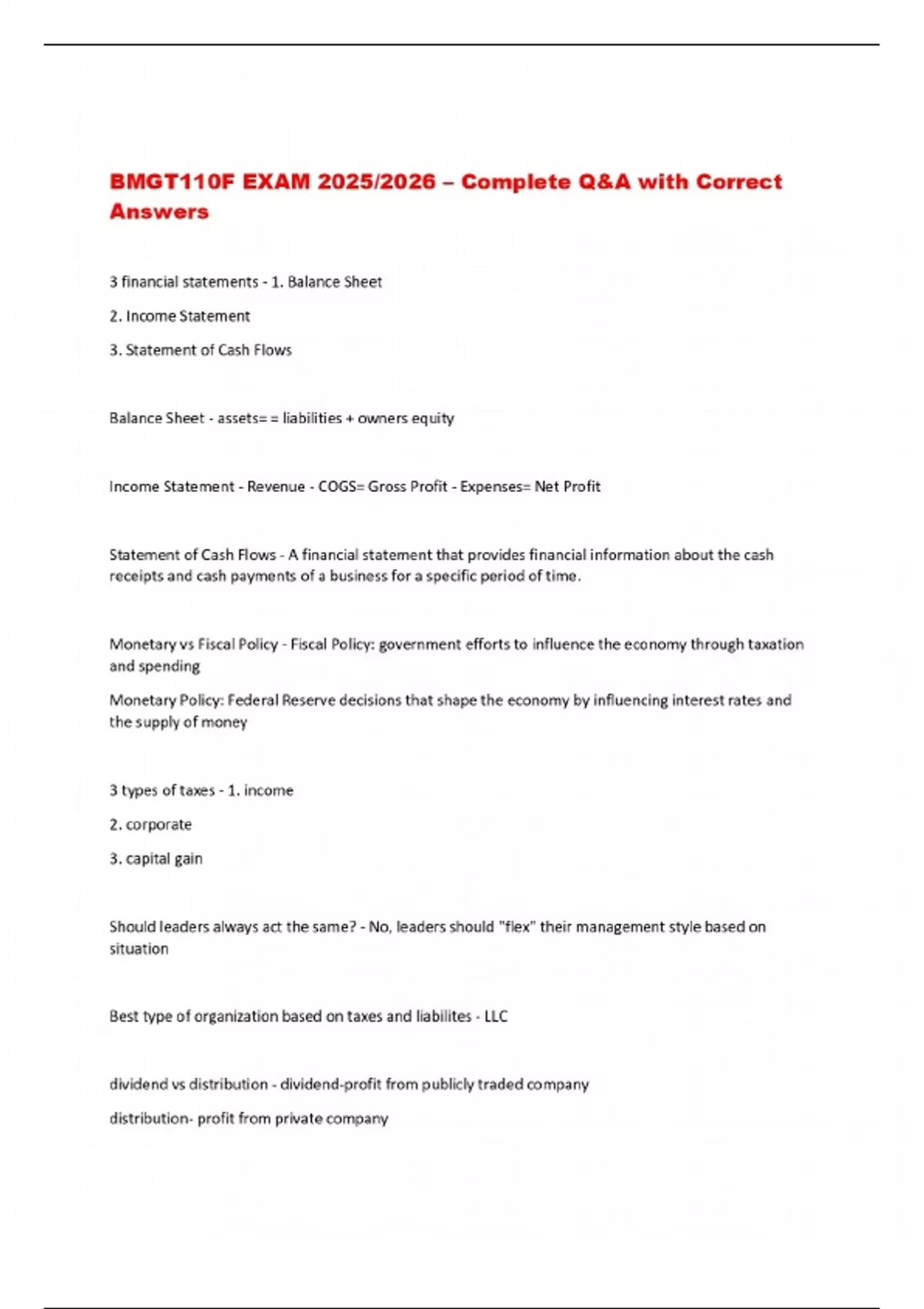 BMGT110F EXAM 2025/2026 – Complete Q&A with Correct Answers