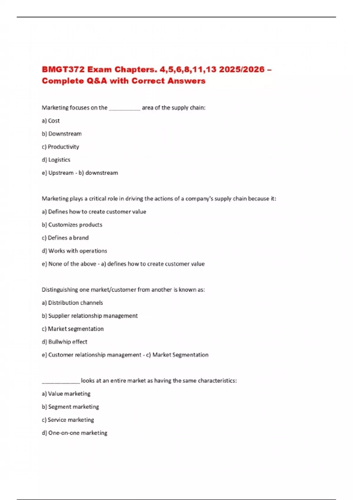 BMGT372 Exam Chapters. 4,5,6,8,11,13 2025/2026 – Complete Q&A with Correct Answers