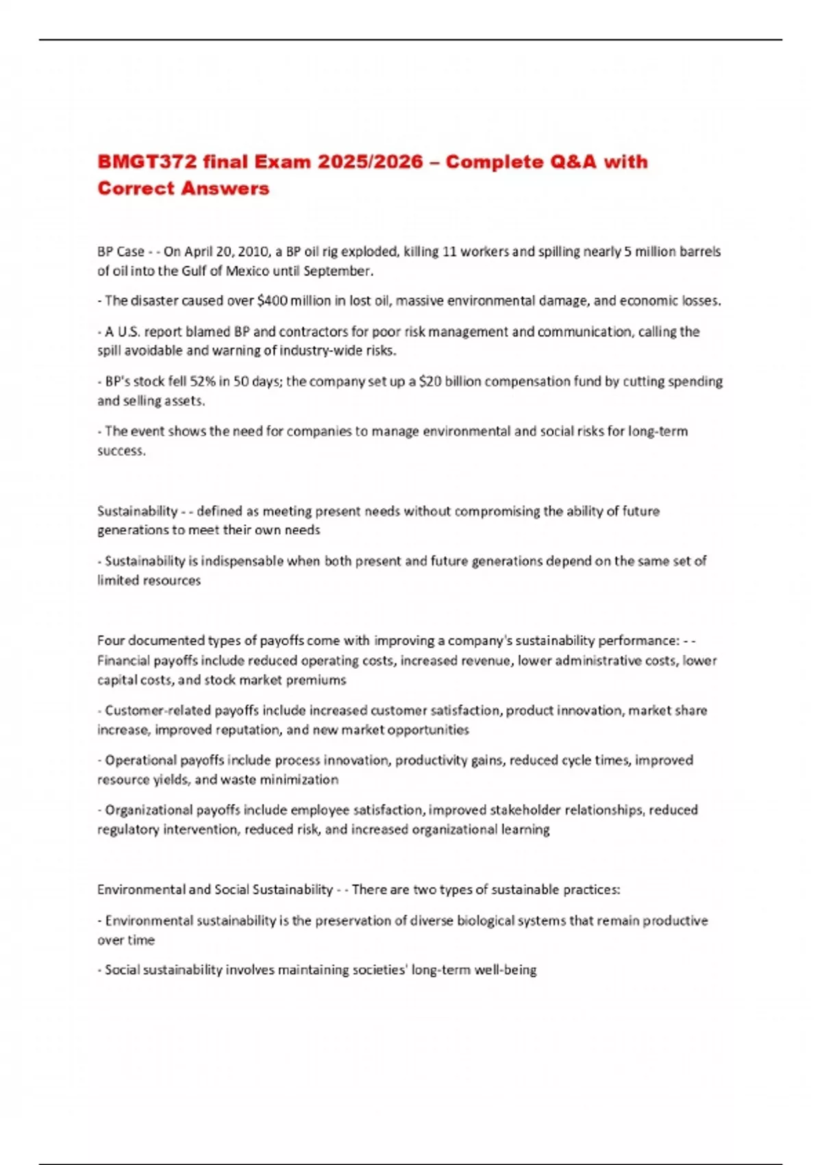 BMGT372 final Exam 2025/2026 – Complete Q&A with Correct Answers