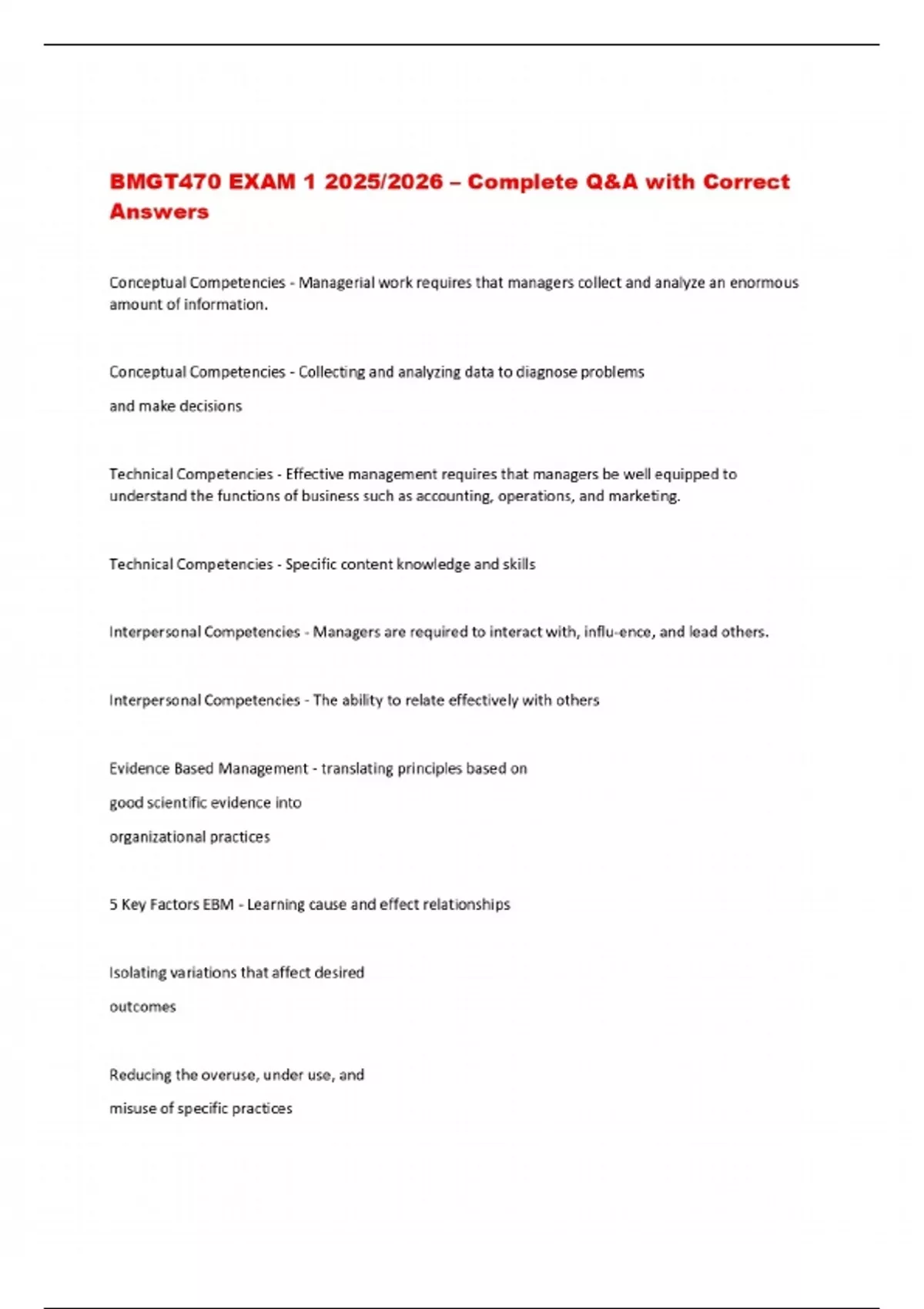 BMGT470 EXAM 1 2025/2026 – Complete Q&A with Correct Answers