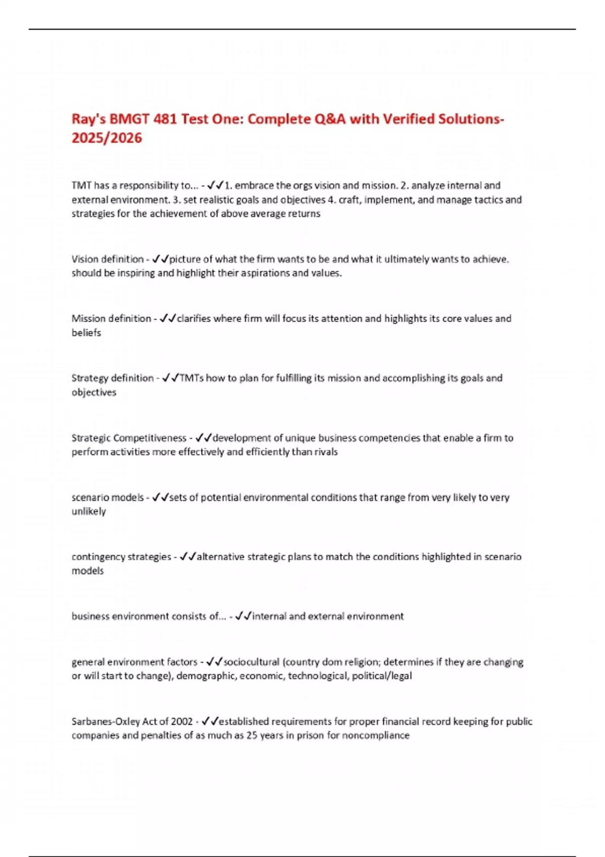 Ray's BMGT 481 Test One: Complete Q&A with Verified Solutions 2025/2026