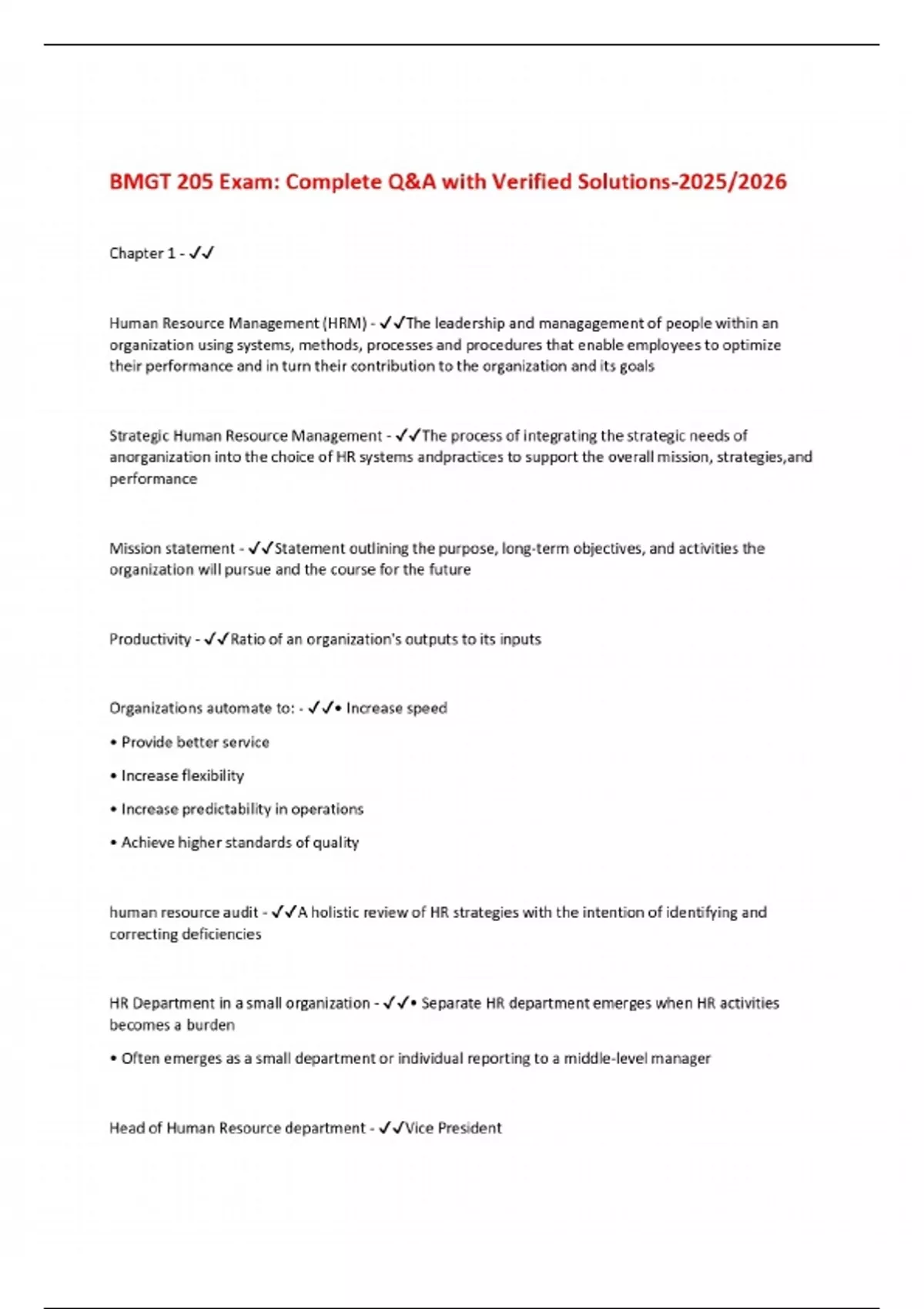 BMGT 205 Exam: Complete Q&A with Verified Solutions-2025/2026