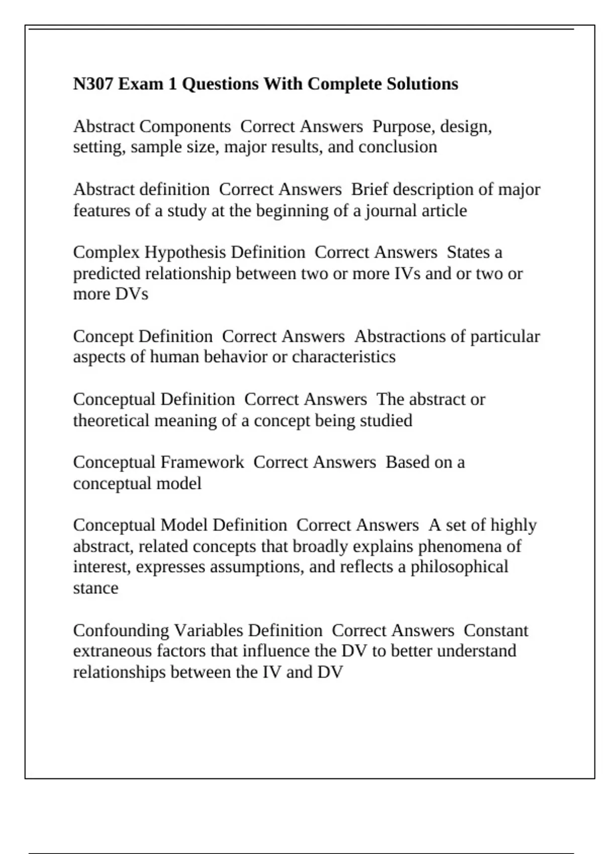 Conceptual Definition Correct Answers The abstract or