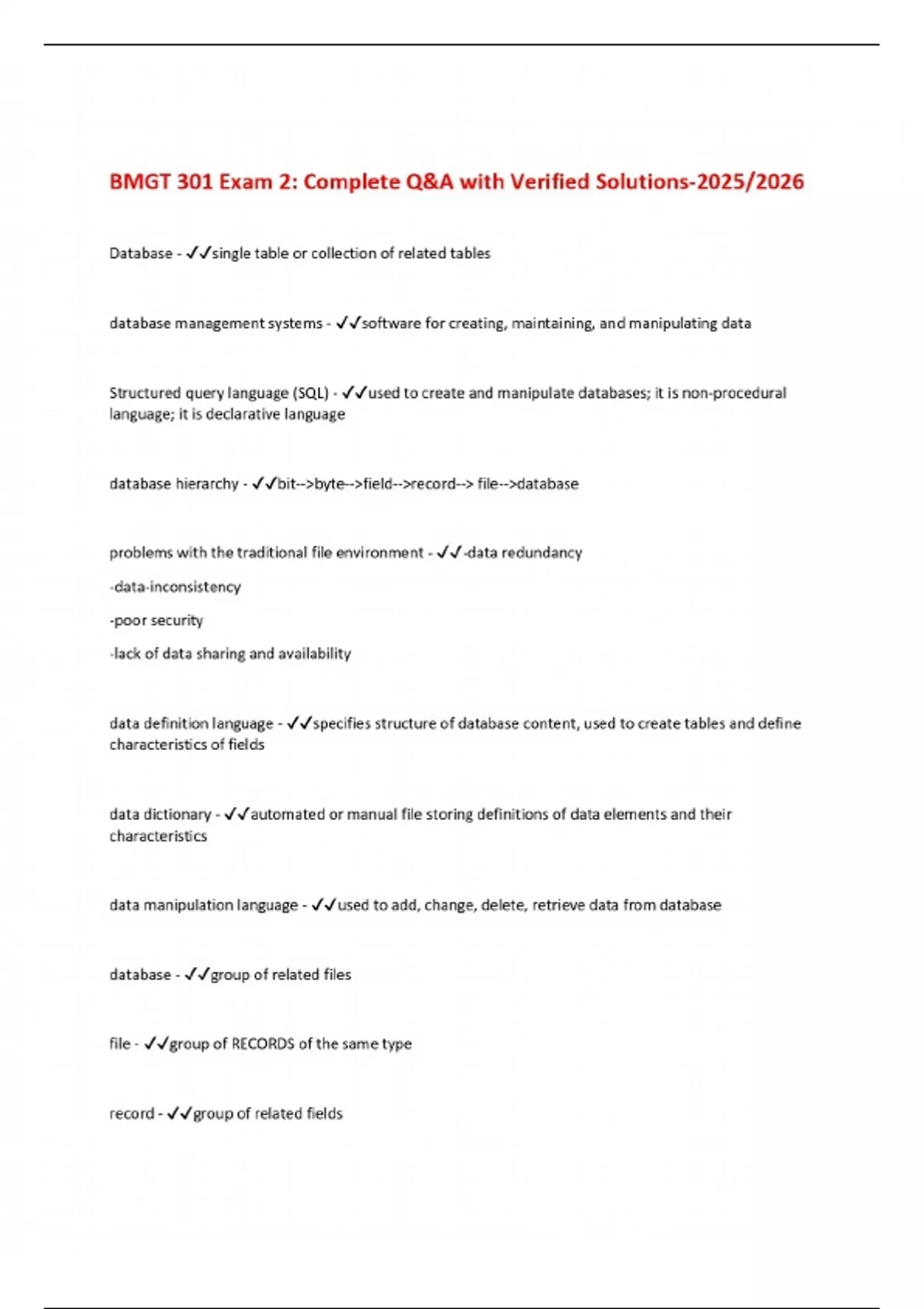 BMGT 301 Exam 2: Complete Q&A with Verified Solutions-2025/2026