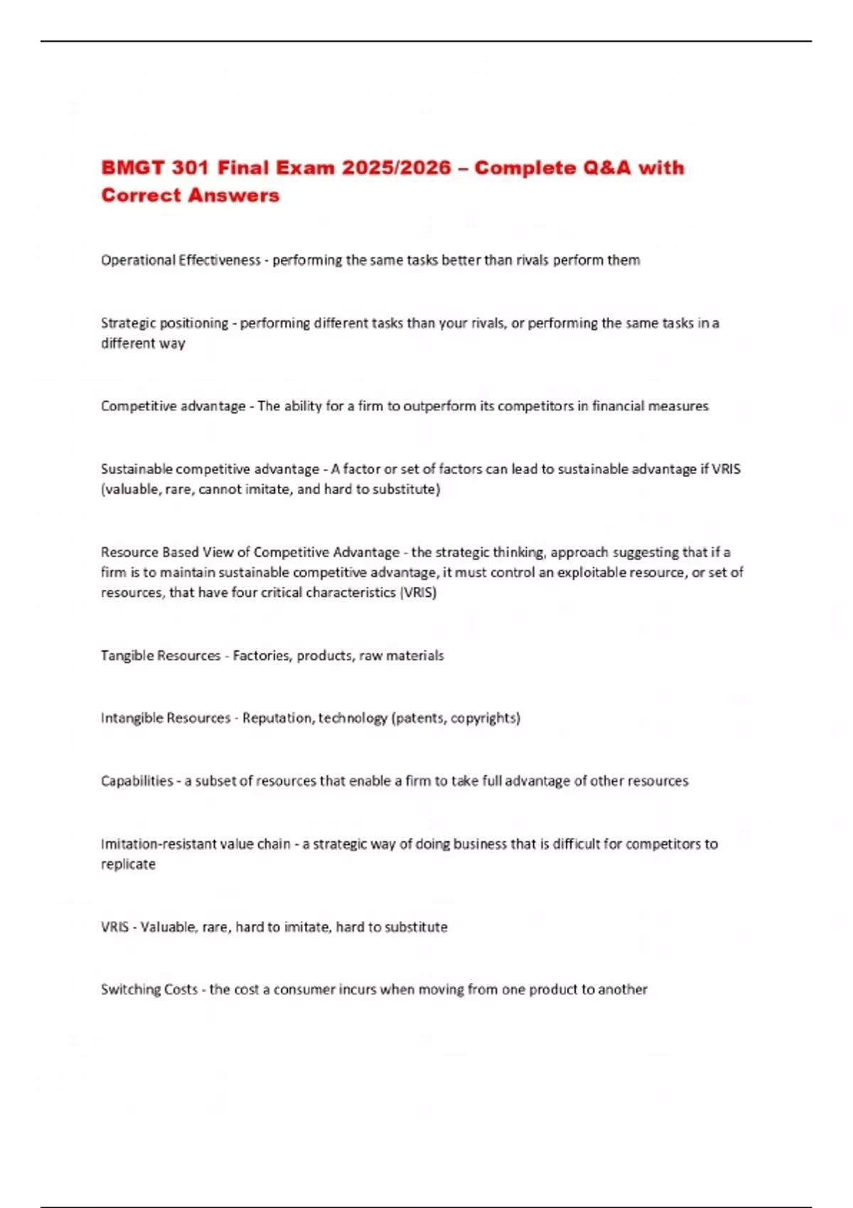 BMGT 301 Final Exam 2025/2026 – Complete Q&A with Correct Answers