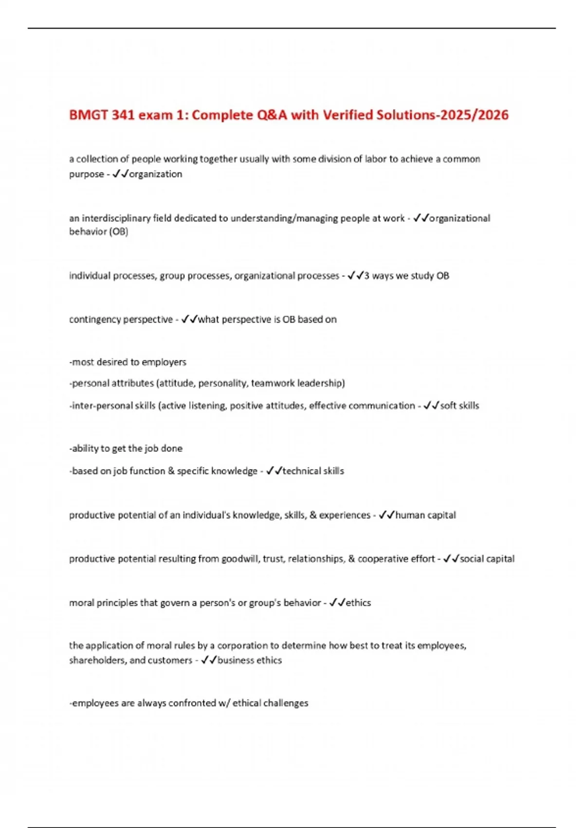 BMGT 341 exam 1: Complete Q&A with Verified Solutions-2025/2026