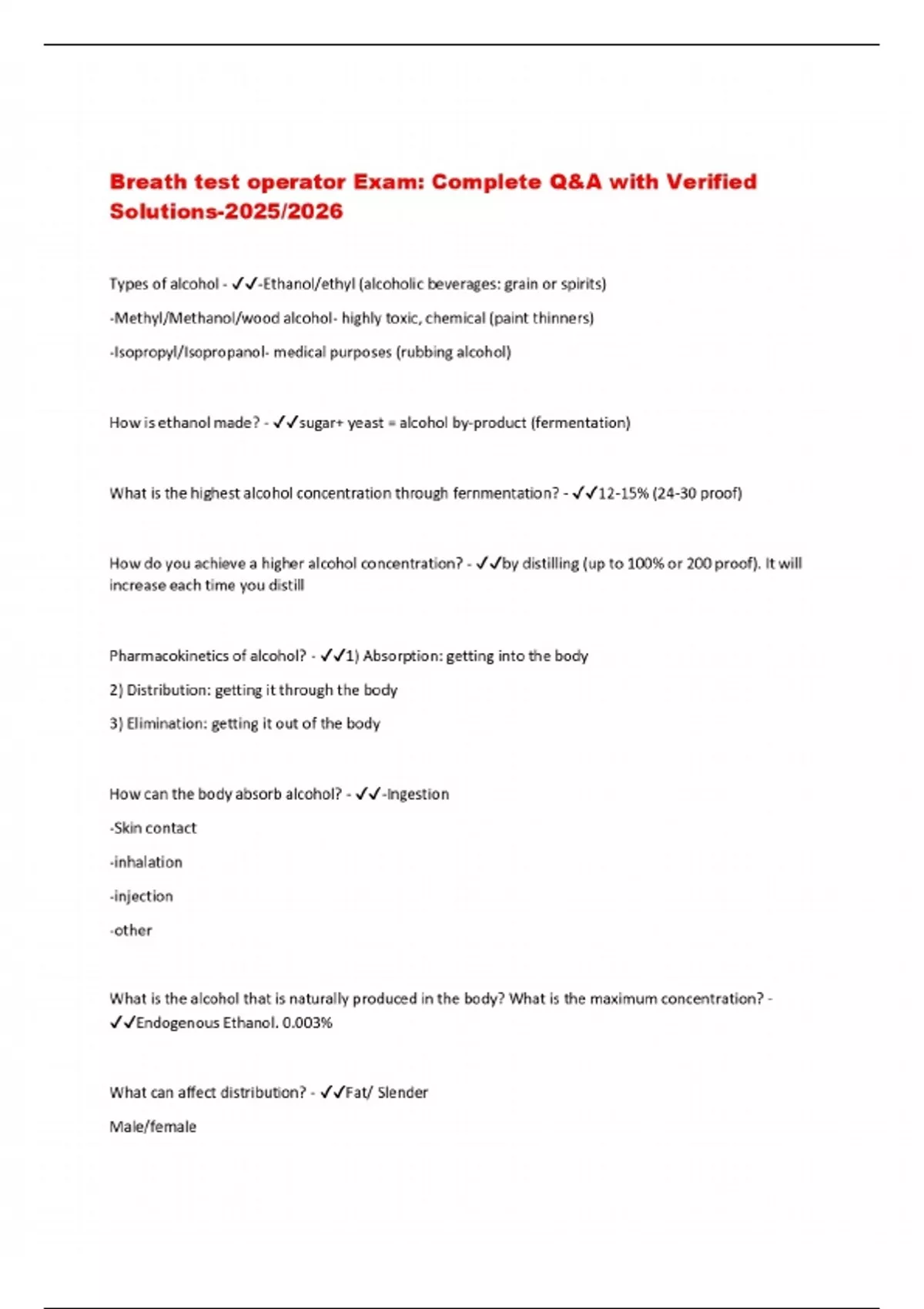 Breath test operator Exam: Complete Q&A with Verified Solutions-2025/2026