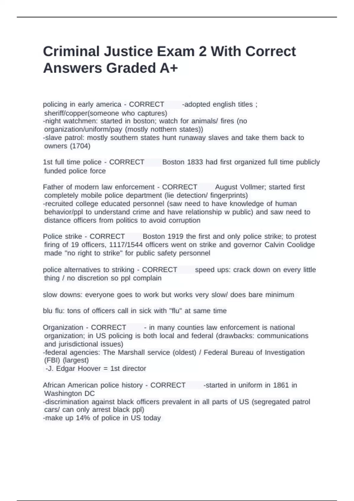 Criminal Justice Exam 2 With Correct