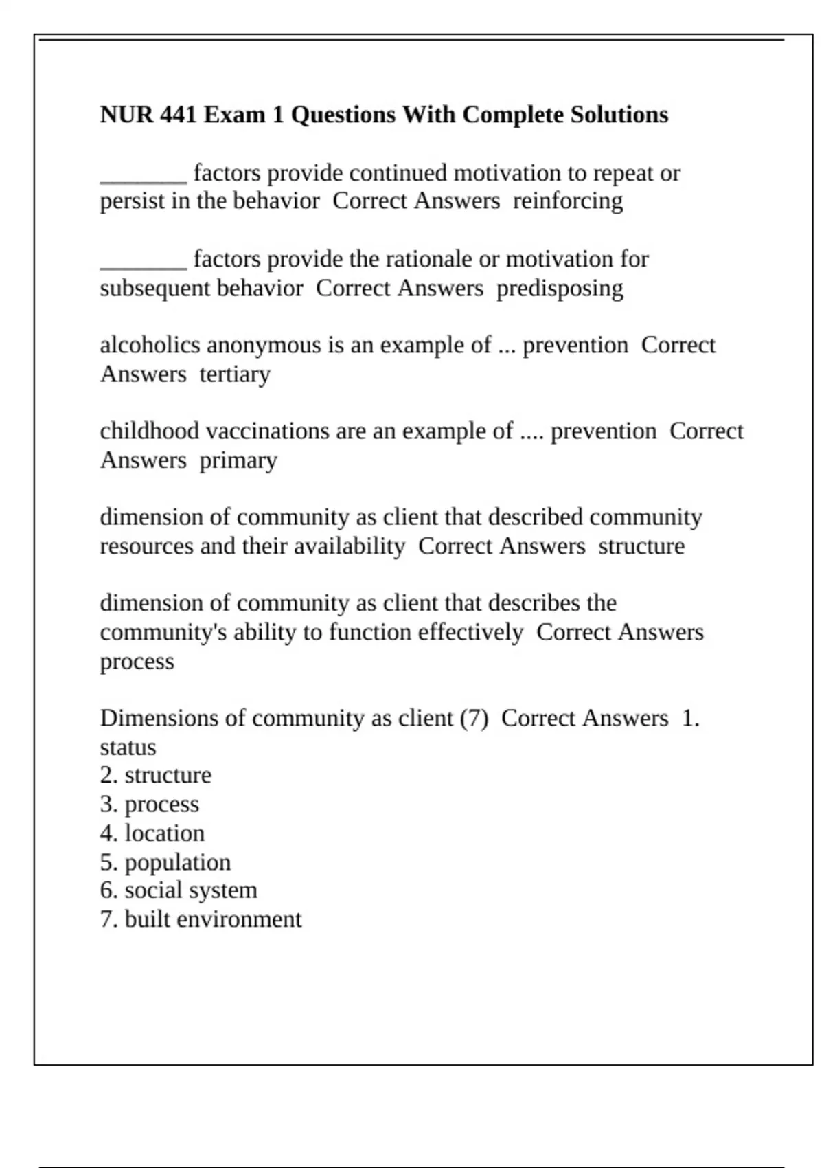 NUR 441 Exam 1 Questions With Complete Solutions