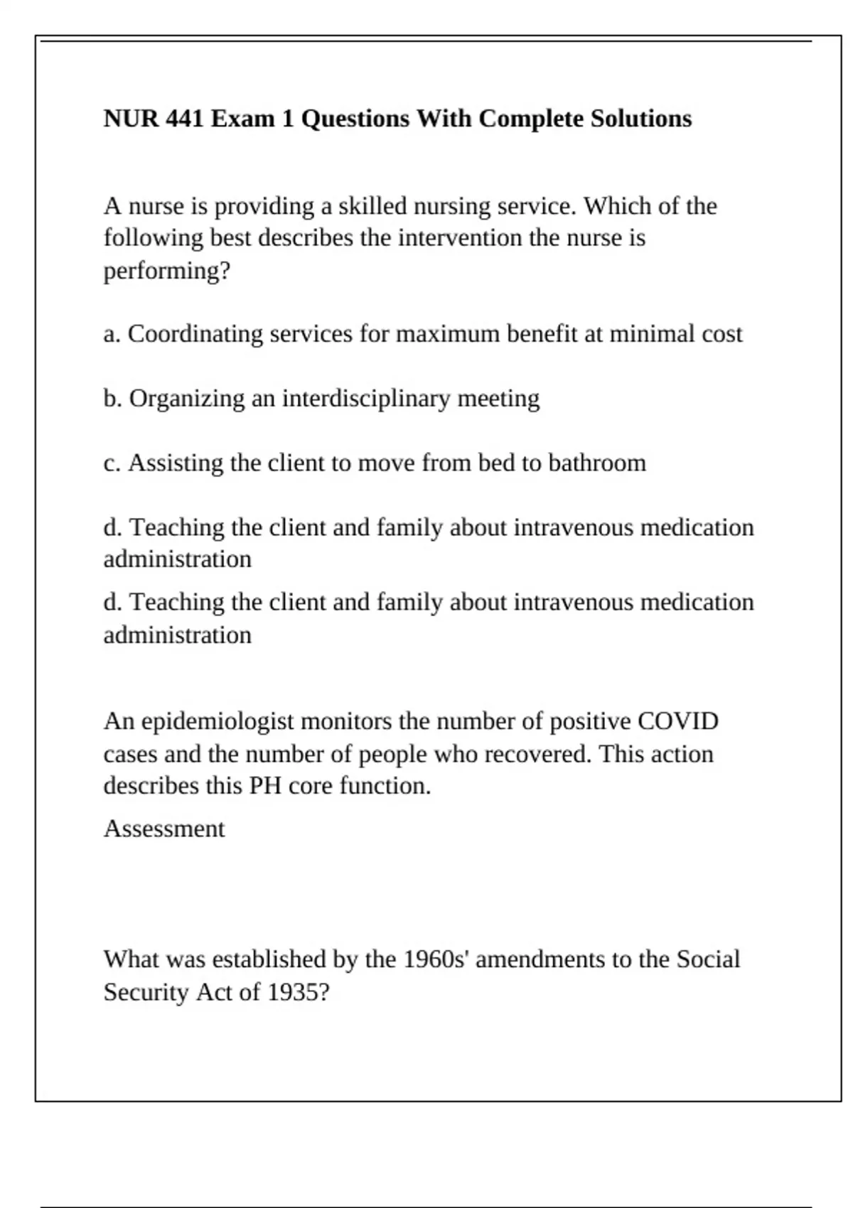 NUR 441 Exam 1 Questions With Complete Solutions