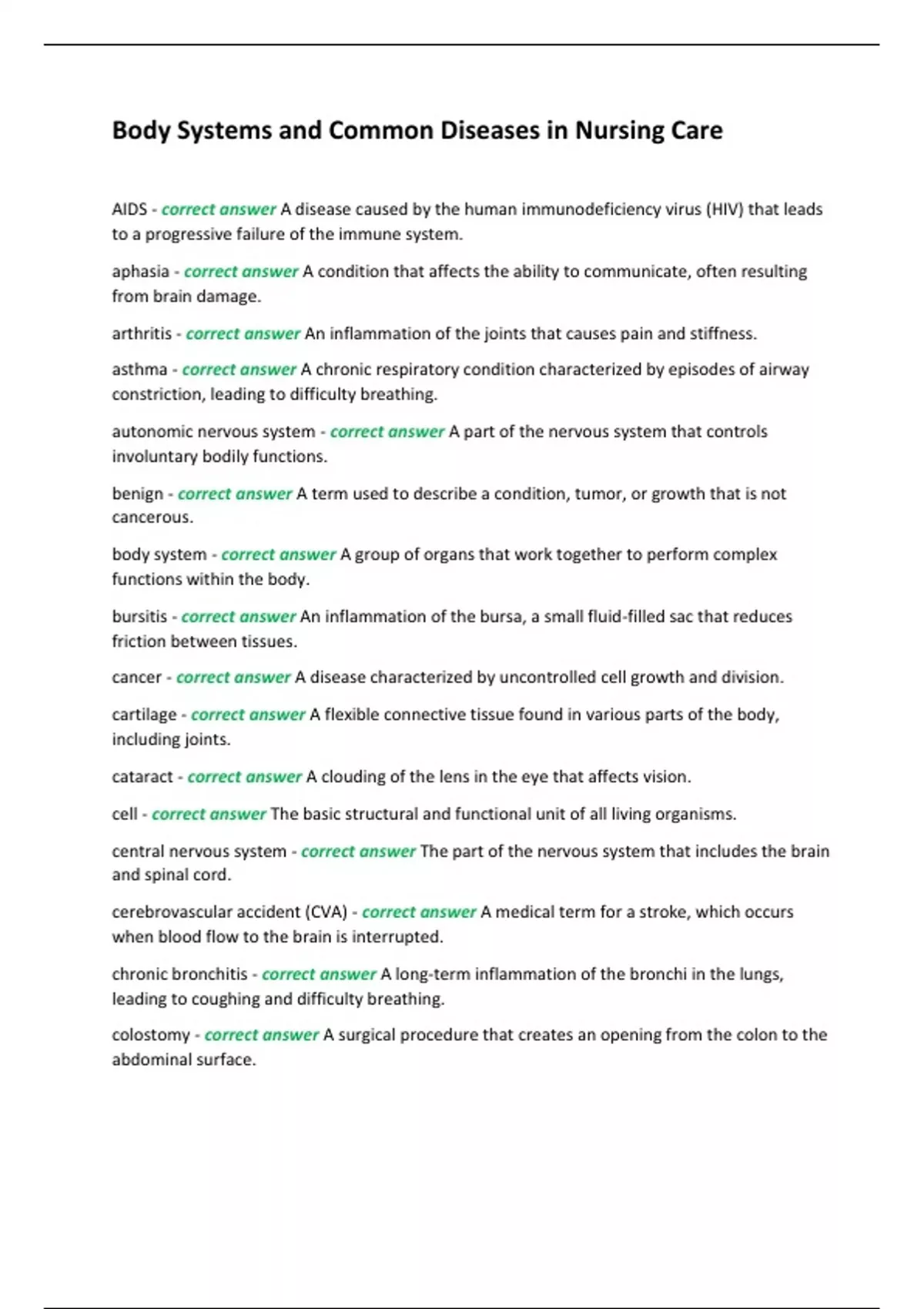 arthritis - correct answer An inflammation of the joints that causes pain and stiffness.