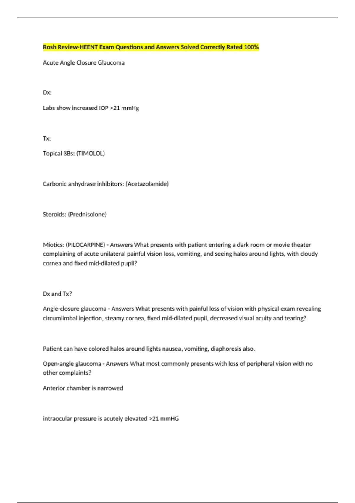 1st line: ** Start IV ACETAZOLAMIDE (carbonic anhydrase inhibitor --> to decrease aqueous humor