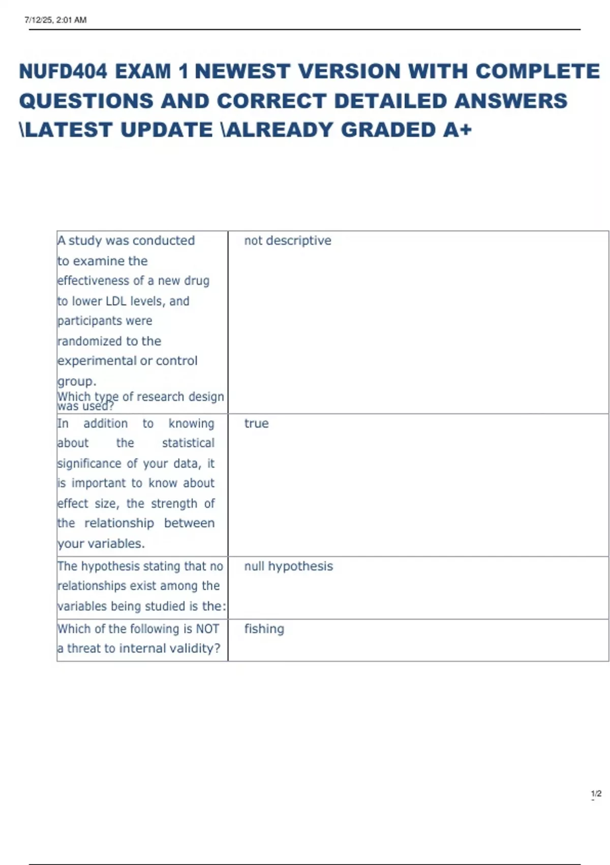 NUFD404 EXAM 1 NEWEST VERSION WITH COMPLETE