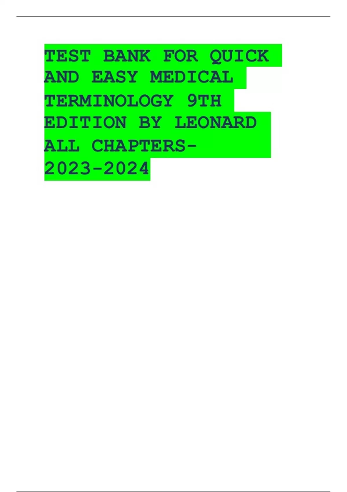 TEST BANK FOR QUICK