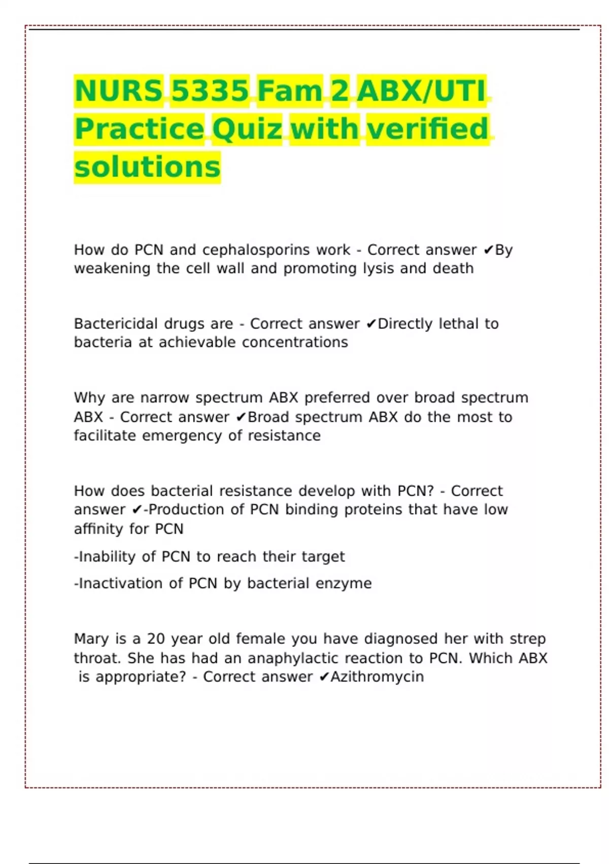 NURS 5335 Fam 2 ABX UTI Practice Quiz with verified solutions