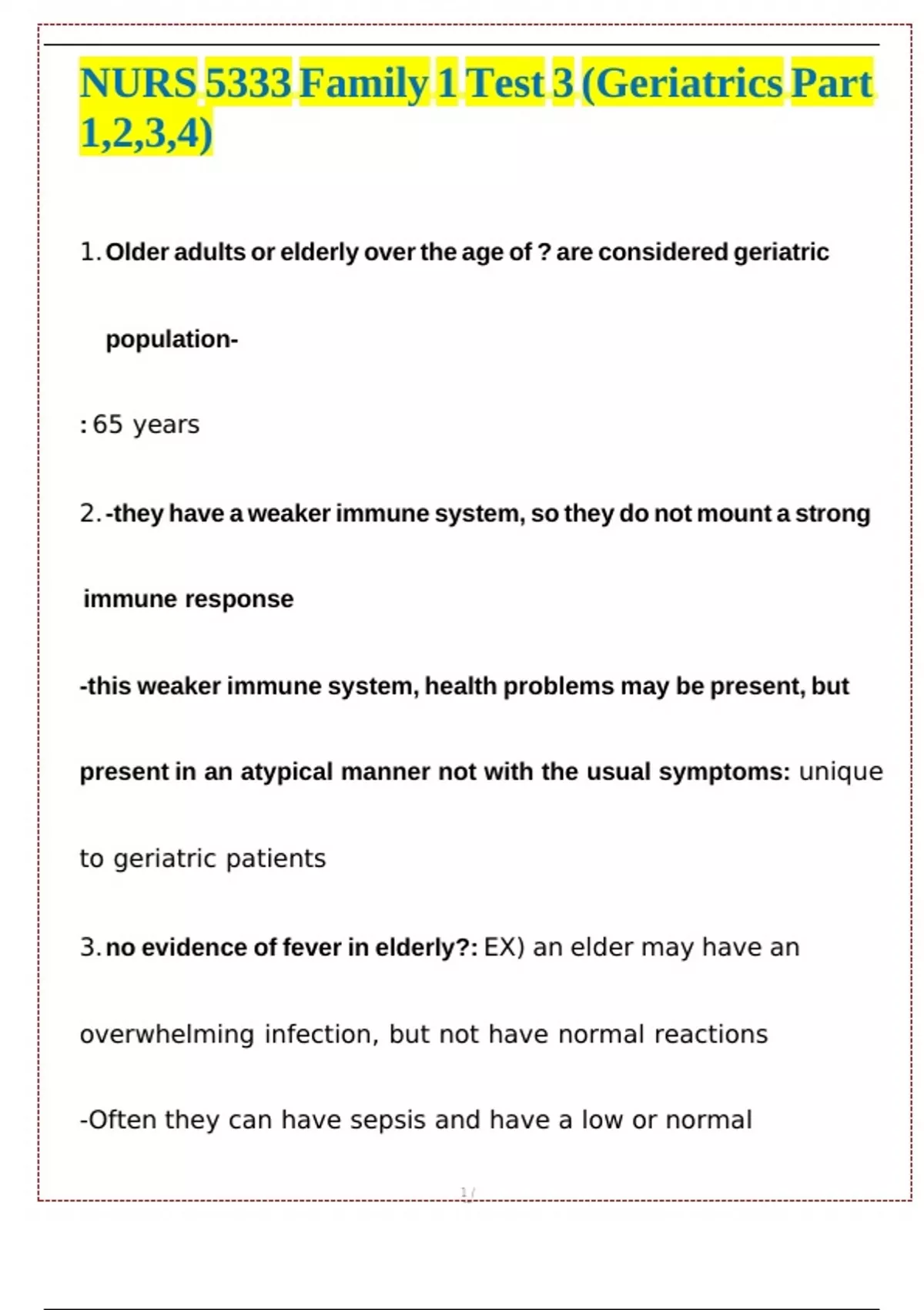 1.Older adults or elderly over the age of ? are considered geriatric