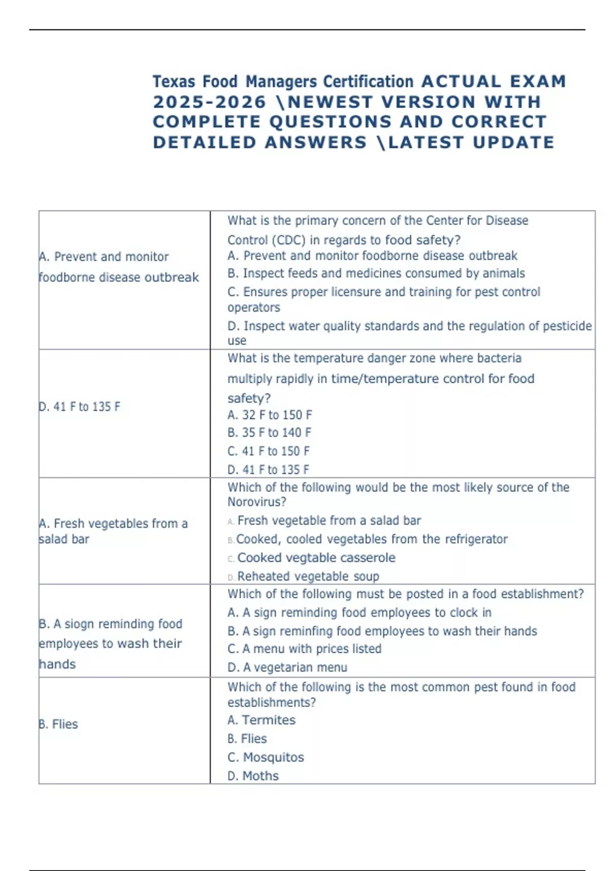 Texas Food Managers Certification ACTUAL EXAM NEWEST VERSION WITH COMPLETE QUESTIONS AND CORRECT DETAILED ANSWERS LATEST UPDATE Texas Food Managers Certification ACTUAL EXAM NEWEST VERSION WITH COMPLETE QUESTIONS AND CORRECT DETAILED ANSWERS LATEST UPDATE Texas Food Managers Certification ACTUAL EXAM NEWEST VERSION WITH COMPLETE QUESTIONS AND CORRECT DETAILED ANSWERS LATEST UPDATE Texas Food Managers Certification ACTUAL EXAM NEWEST VERSION WITH COMPLETE QUESTIONS AND CORRECT DETAILED ANSWERS LATEST UPDATE Texas Food Managers Certification ACTUAL EXAM NEWEST VERSION WITH COMPLETE QUESTIONS AND CORRECT DETAILED ANSWERS LATEST UPDATE Texas Food Managers Certification ACTUAL EXAM NEWEST VERSION WITH COMPLETE QUESTIONS AND CORRECT DETAILED ANSWERS LATEST UPDATE Texas Food Managers Certification ACTUAL EXAM NEWEST VERSION WITH COMPLETE QUESTIONS AND CORRECT DETAILED ANSWERS LATEST UPDATE Texas Food Managers Certification ACTUAL EXAM NEWEST VERSION WITH COMPLETE QUESTIONS AND CORRECT DETAILED ANSWERS LATEST UPDATE Texas Food Managers Certification ACTUAL EXAM NEWEST VERSION WITH COMPLETE QUESTIONS AND CORRECT DETAILED ANSWERS LATEST UPDATE Texas Food Managers Certification ACTUAL EXAM NEWEST VERSION WITH COMPLETE QUESTIONS AND CORRECT DETAILED ANSWERS LATEST UPDATE Texas Food Managers Certification ACTUAL EXAM NEWEST VERSION WITH COMPLETE QUESTIONS AND CORRECT DETAILED ANSWERS LATEST UPDATE Texas Food Managers Certification ACTUAL EXAM NEWEST VERSION WITH COMPLETE QUESTIONS AND CORRECT DETAILED ANSWERS LATEST UPDATE Texas Food Managers Certification ACTUAL EXAM NEWEST VERSION WITH COMPLETE QUESTIONS AND CORRECT DETAILED ANSWERS LATEST UPDATE Texas Food Managers Certification ACTUAL EXAM NEWEST VERSION WITH COMPLETE QUESTIONS AND CORRECT DETAILED ANSWERS LATEST UPDATE Texas Food Managers Certification ACTUAL EXAM NEWEST VERSION WITH COMPLETE QUESTIONS AND CORRECT DETAILED ANSWERS LATEST UPDATE Texas Food Managers Certification ACTUAL EXAM NEWEST VERSION WITH COMPLETE QUESTIONS AND CORRECT DETAILED ANSWERS LATEST UPDATE