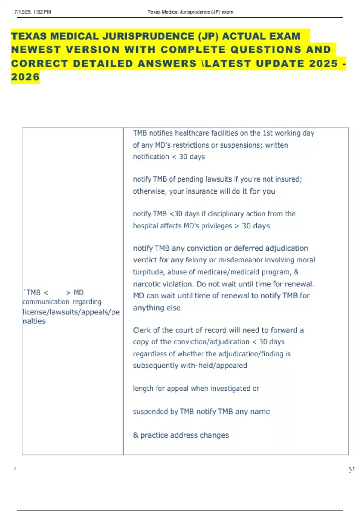 , 7/12/25, 1:52 PM Texas Medical Jurisprudence (JP) exam