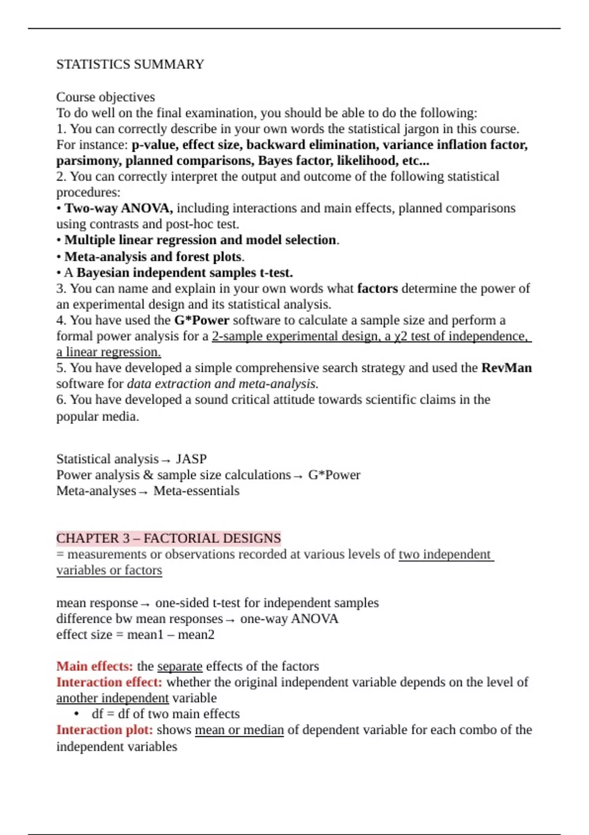 Providing a detailed summary for the course Statistics 2. I got a 9 with these notes. Additionally, the questions in pastel green are the irats/trats provided by the professor with their correct answer. Most of these questions were on the exam.