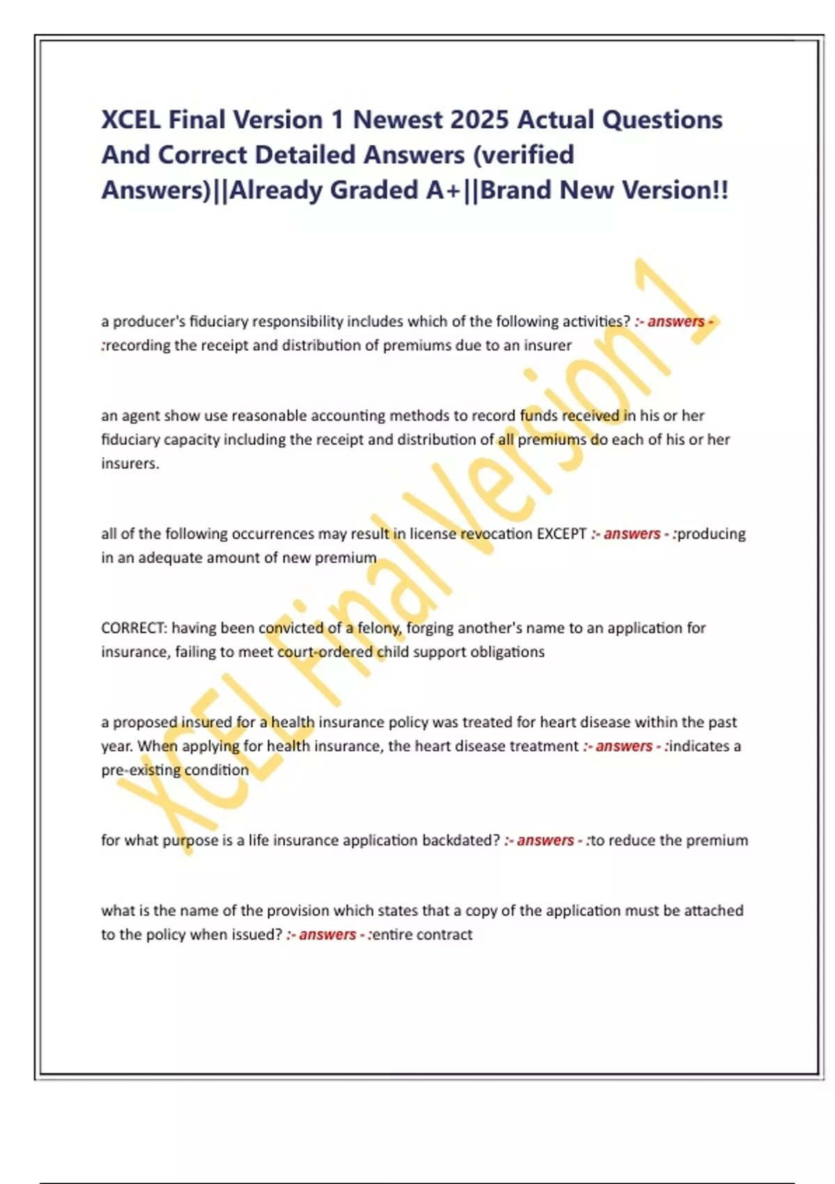 XCEL Final Version 1 Newest 2025 Actual Questions And Correct Detailed Answers (verified Answers)||Already Graded A+||Brand New Version!!