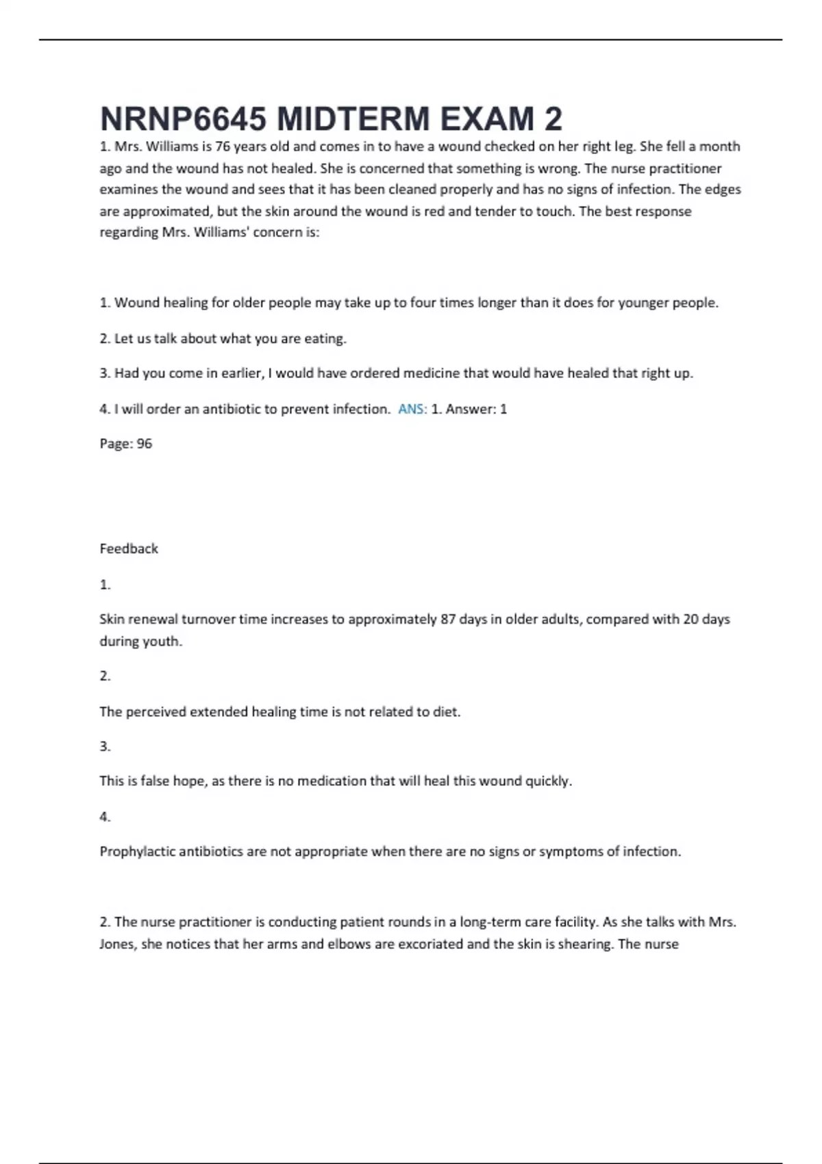 1. Mrs. Williams is 76 years old and comes in to have a wound checked on her right leg. She fell a month