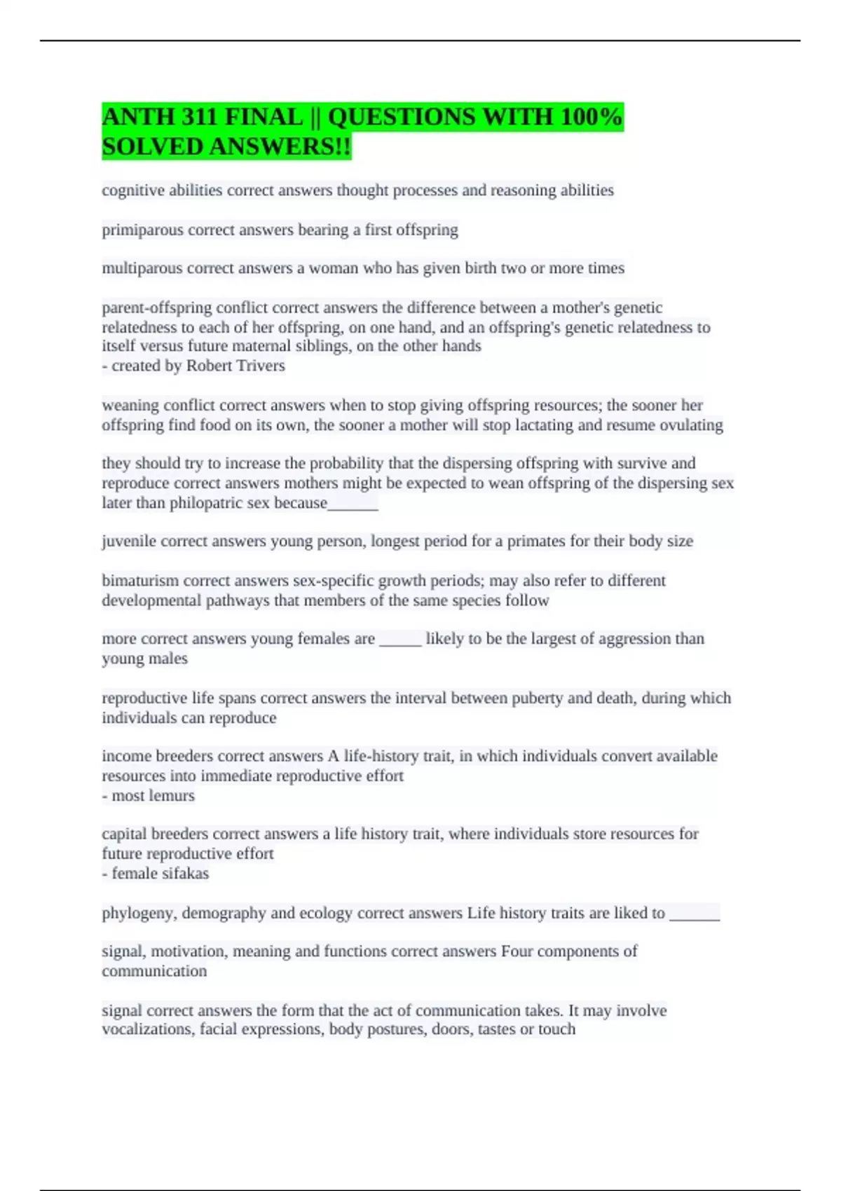 ANTH 311 FINAL || QUESTIONS WITH 100% SOLVED ANSWERS!!