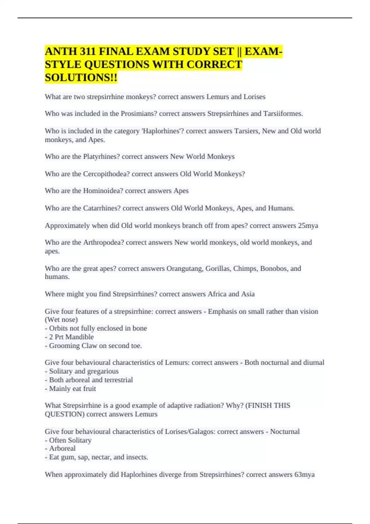 ANTH 311 FINAL EXAM STUDY SET || EXAM-STYLE QUESTIONS WITH CORRECT SOLUTIONS!!