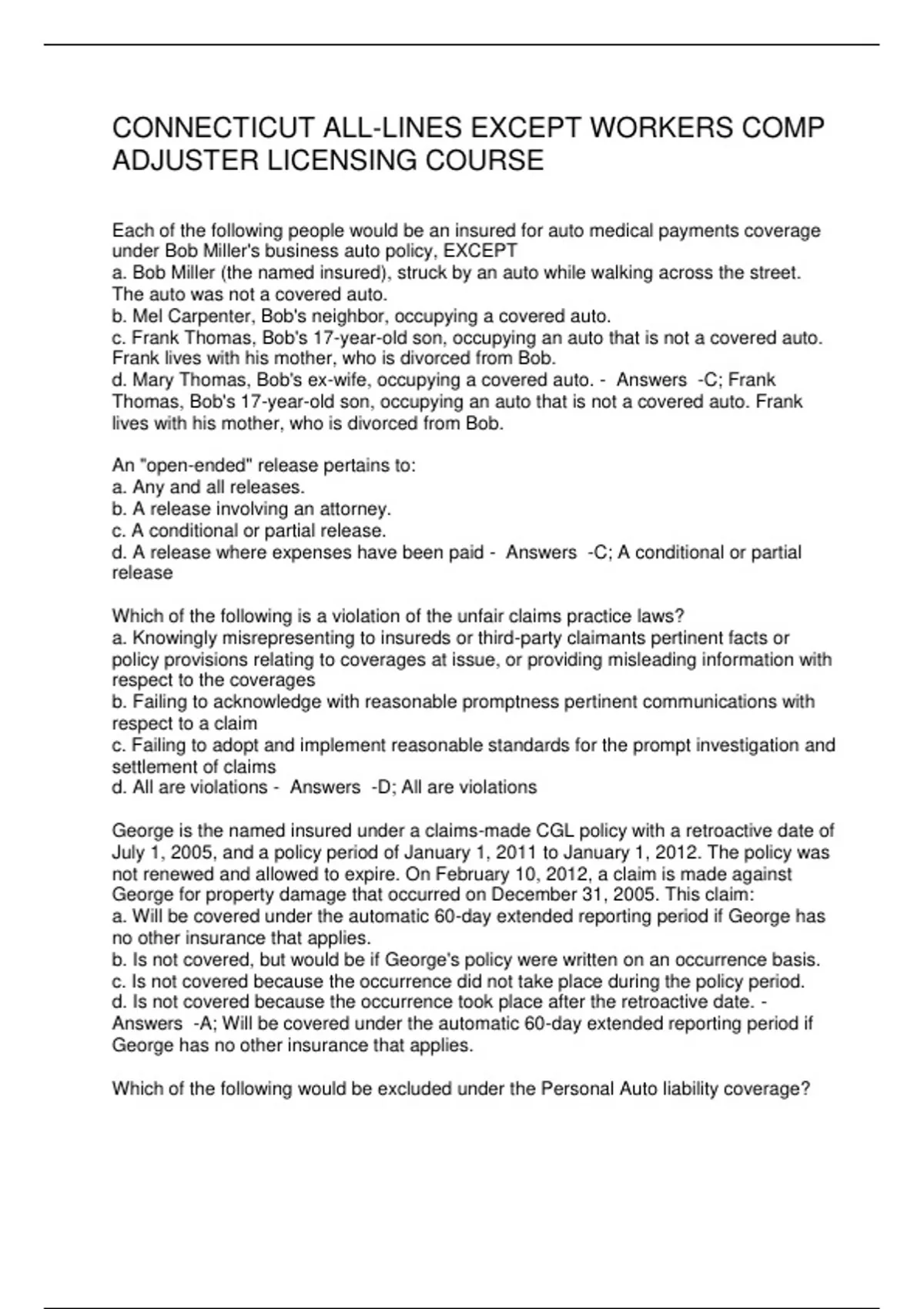 CONNECTICUT ALL-LINES EXCEPT WORKERS COMP ADJUSTER LICENSING COURSE