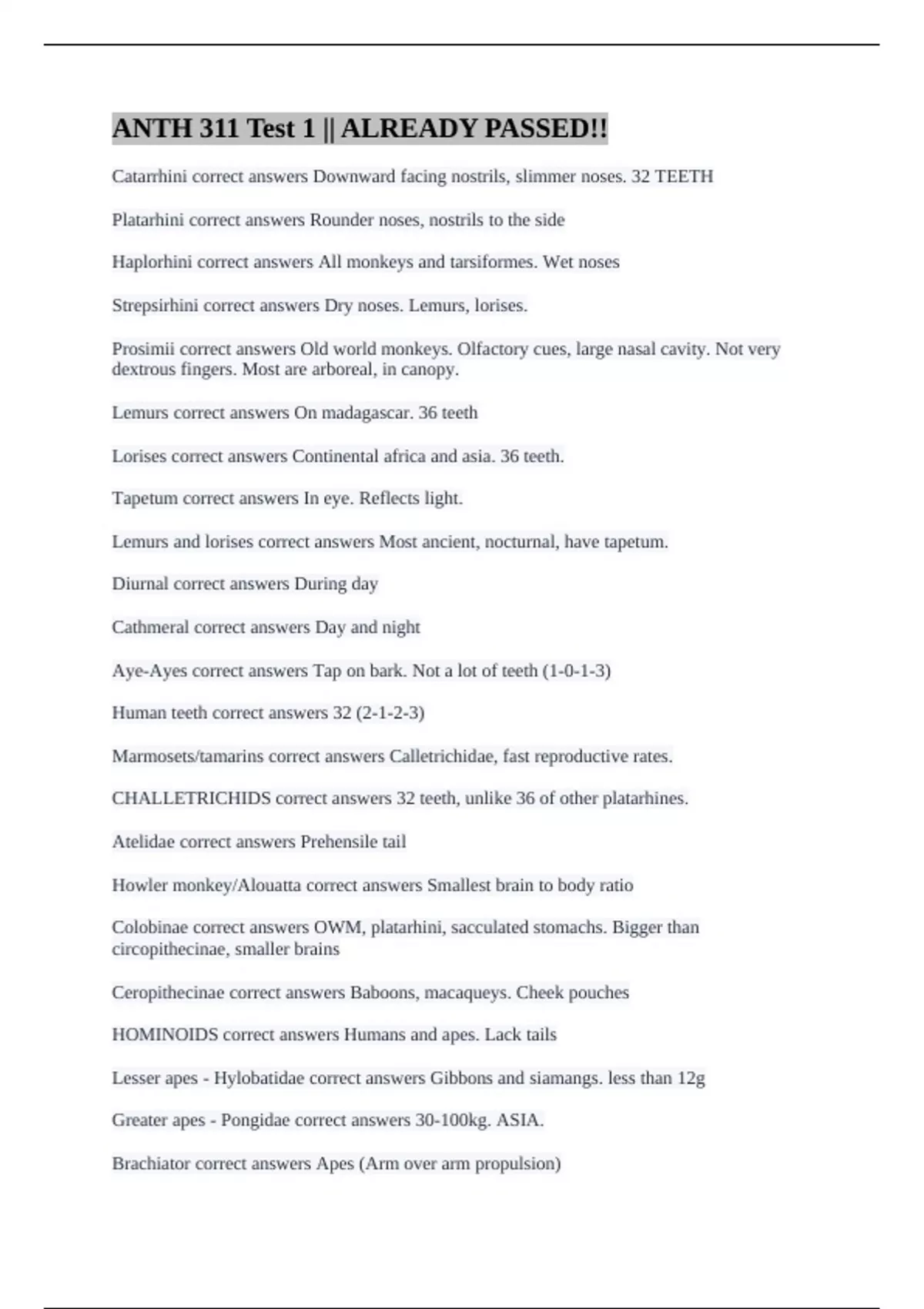 ANTH 311 Test 1 || ALREADY PASSED!!