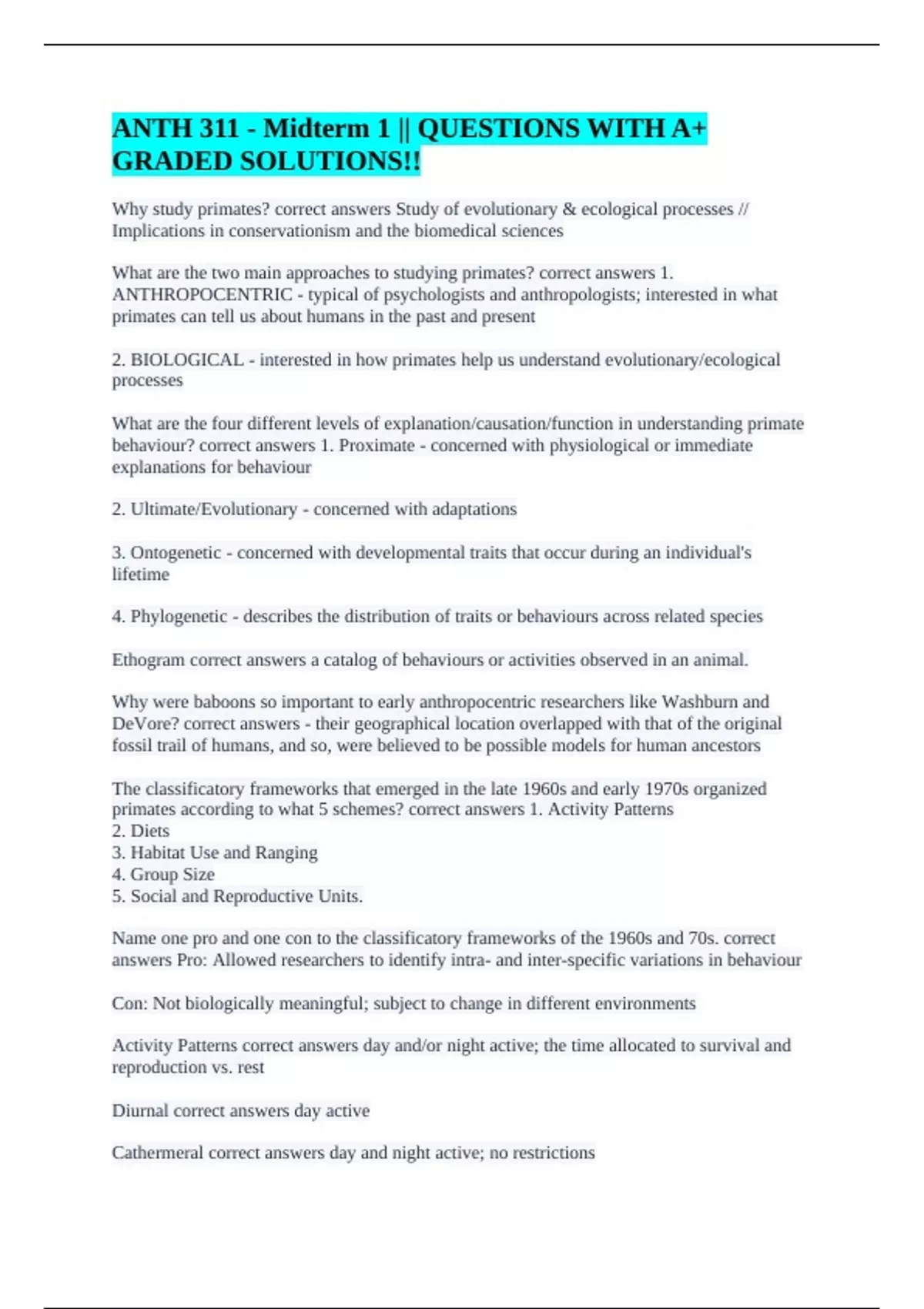 ANTH 311 - Midterm 1 || QUESTIONS WITH A+ GRADED SOLUTIONS!!