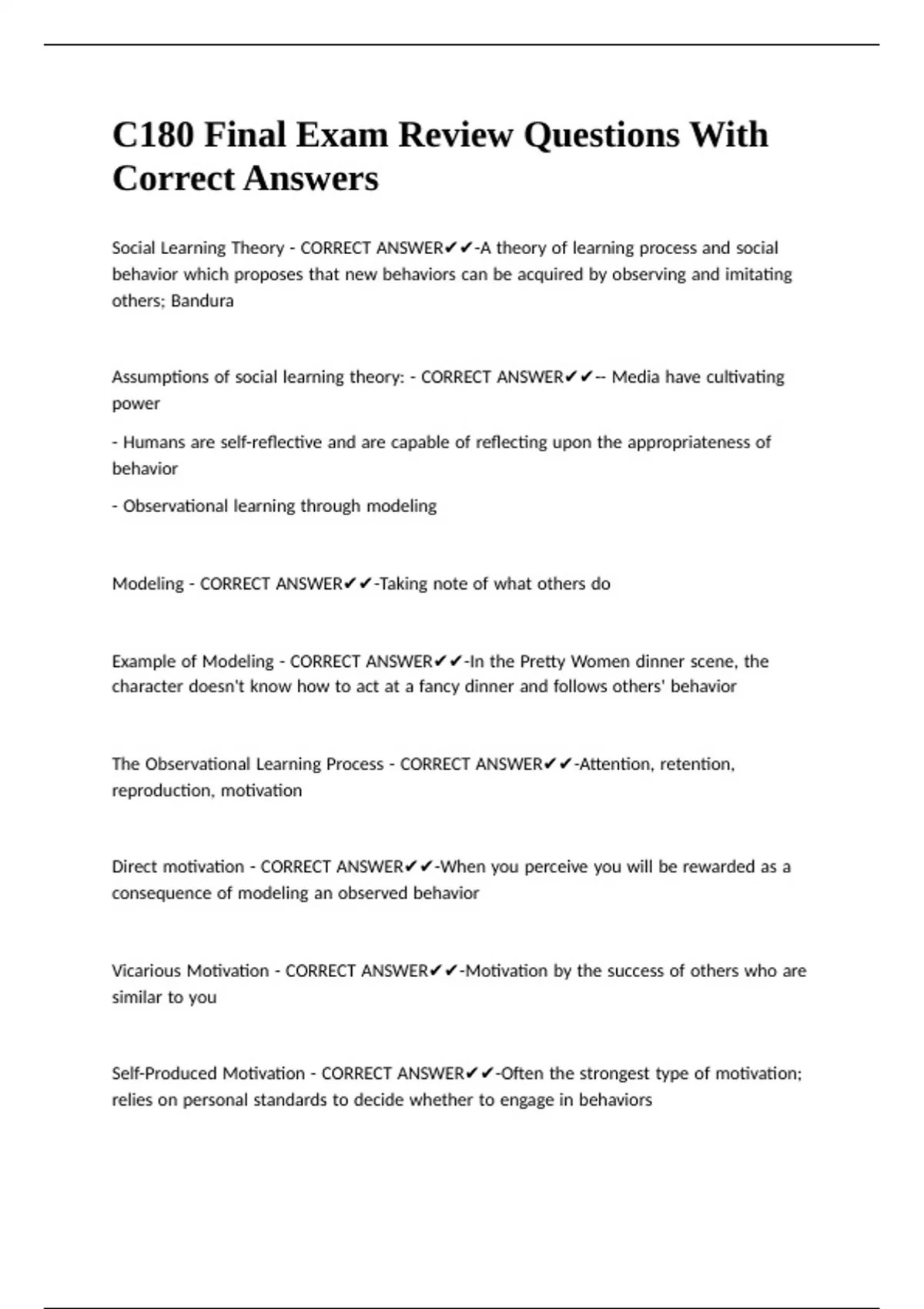 C180 Final Exam Review Questions With Correct Answers.