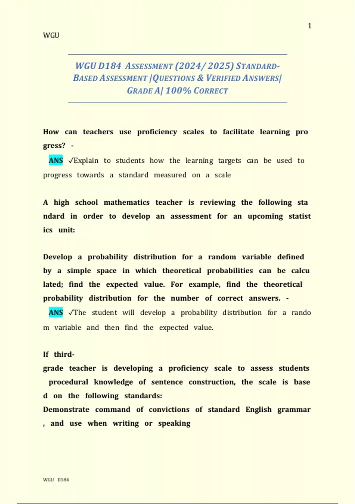 WGU D184 ASSESSMENT (2024/ 2025) STANDARD-