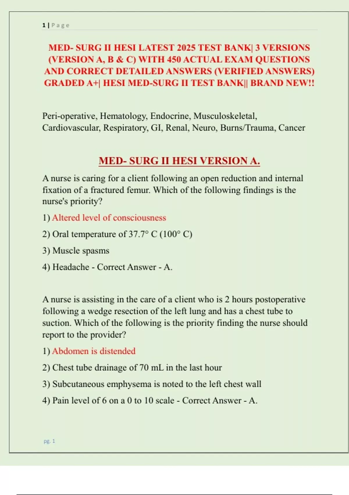 MED- SURG II HESI LATEST 2025 TEST BANK| 3 VERSIONS